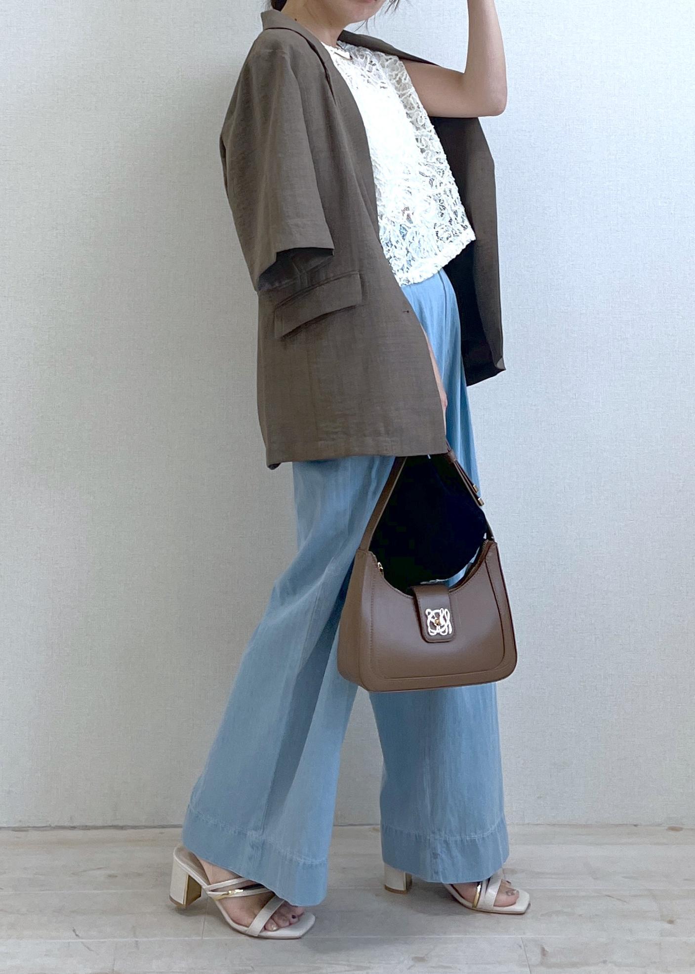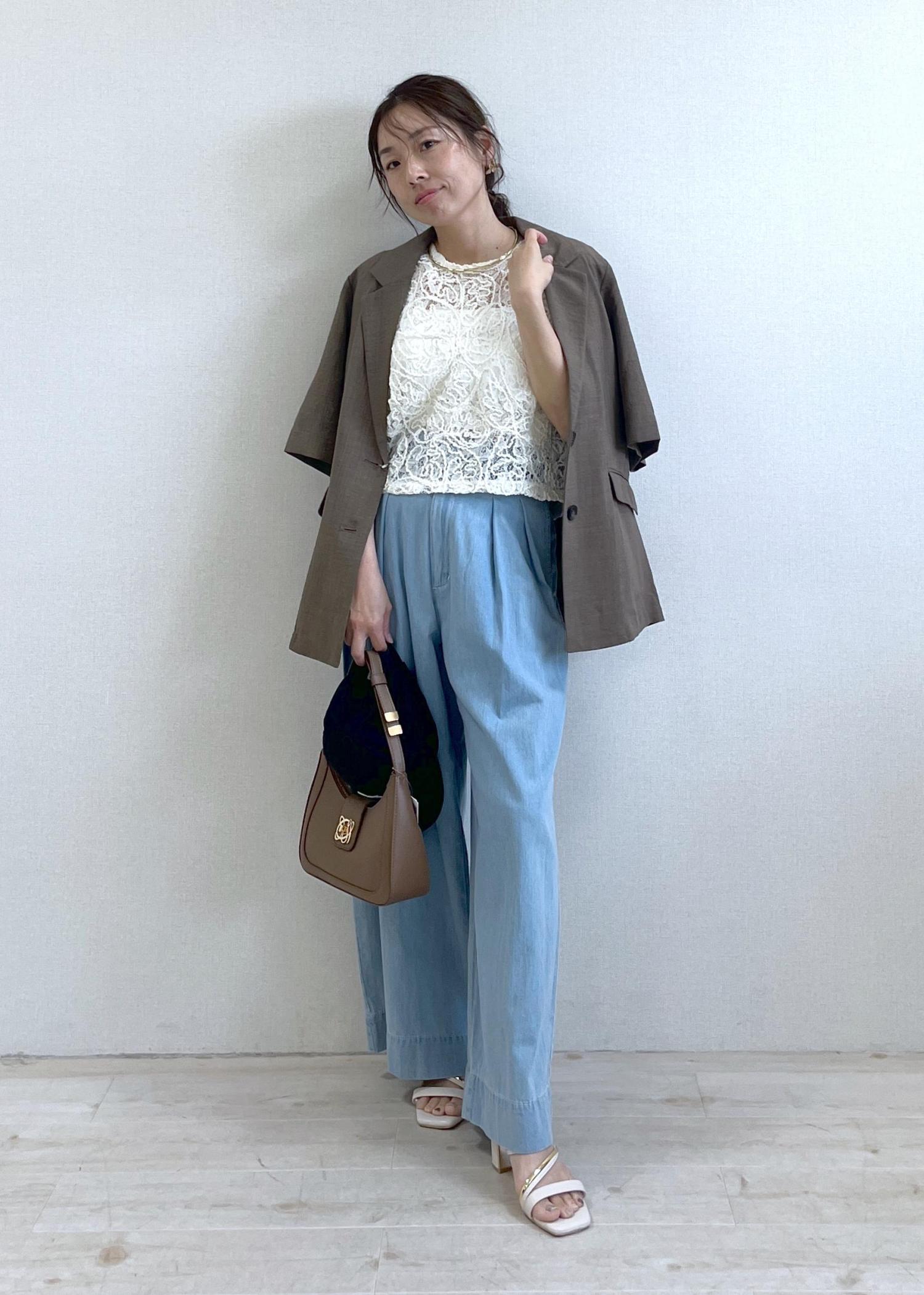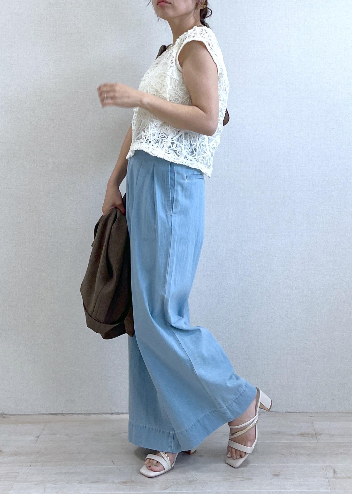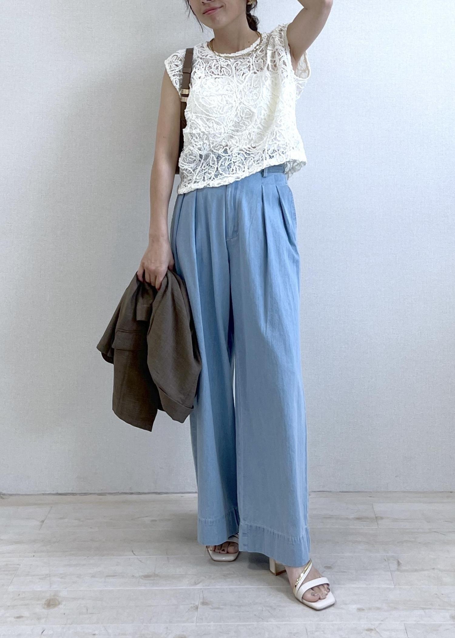 レースのやわらかさと、ワイドデニムの心地よさ。