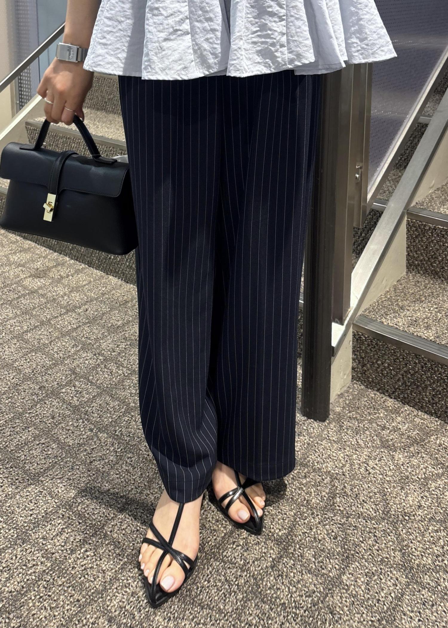 アウトレットVIS【接触冷感/UVケア】ピンストライプリラックスワイドパンツネイビー系 / S¥2,636レビュー履き心地楽ちんなリラックスパンツ。