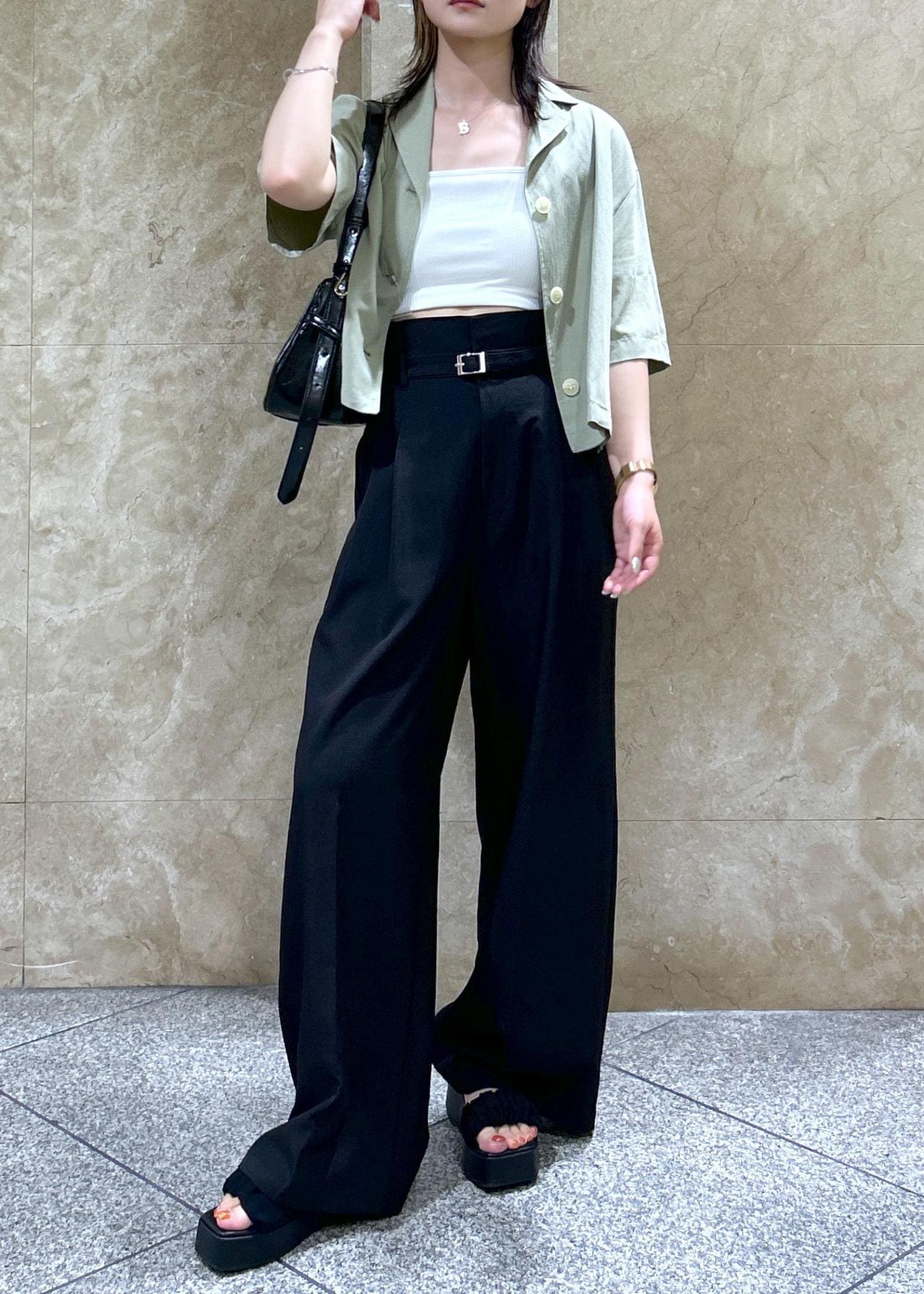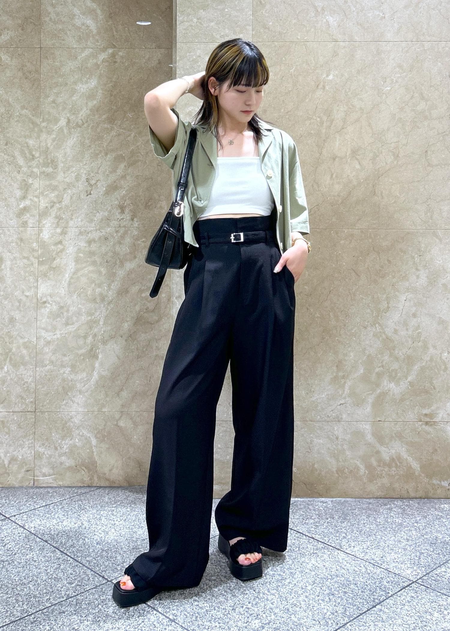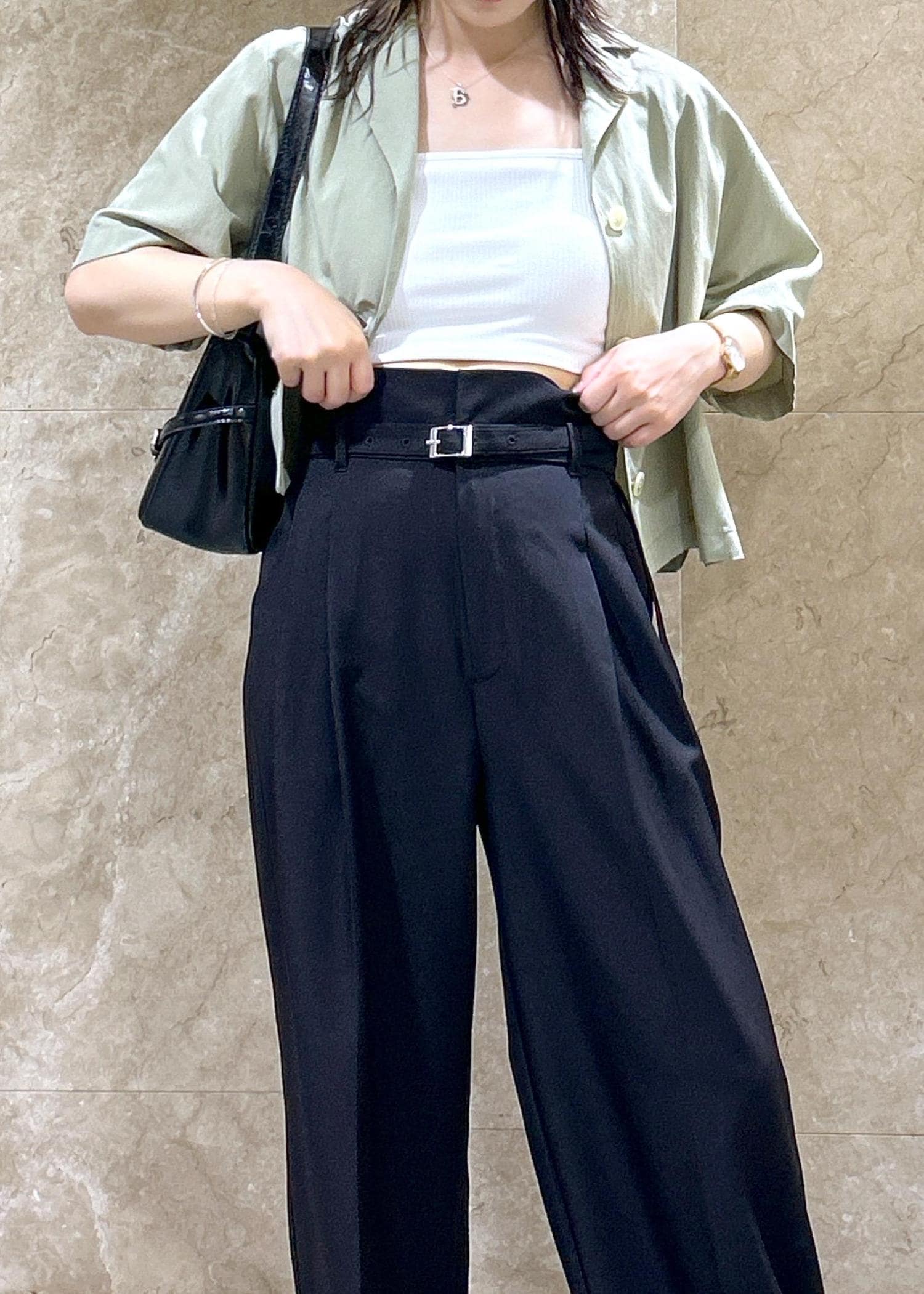 VIS【新色追加】【防シワ/接触冷感】ベルトディテールタックワイドスラックスパンツブラック / S¥6,589レビューサラサラでゆったりと履けるワイドシルエットのスラックスです。
