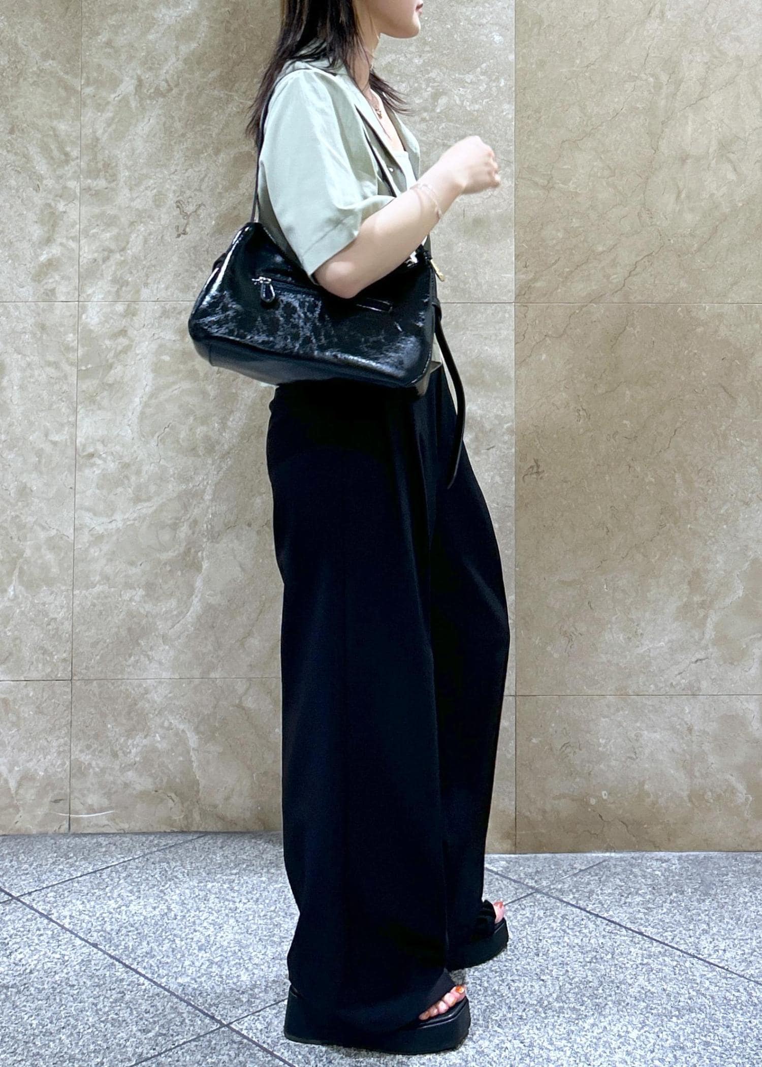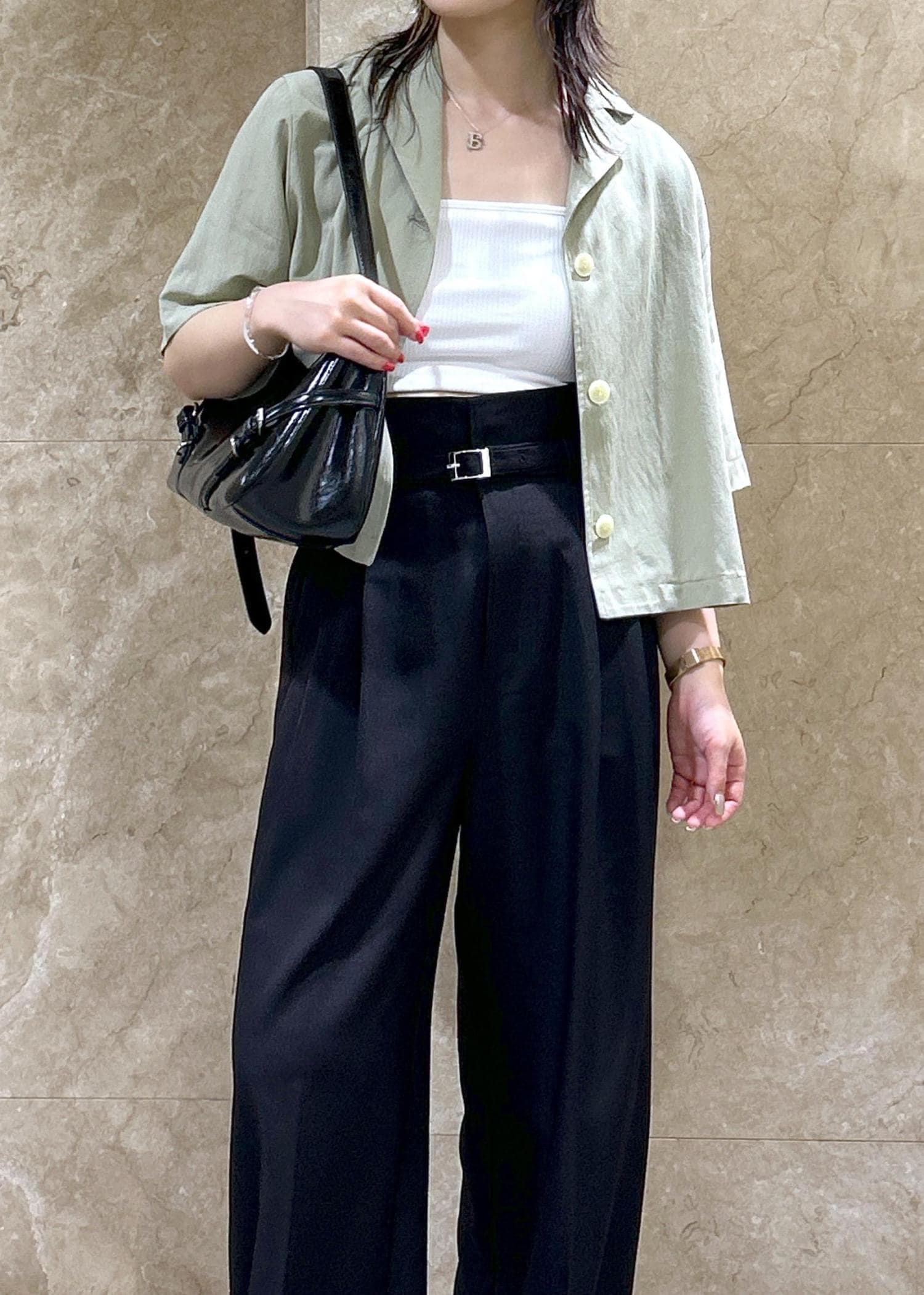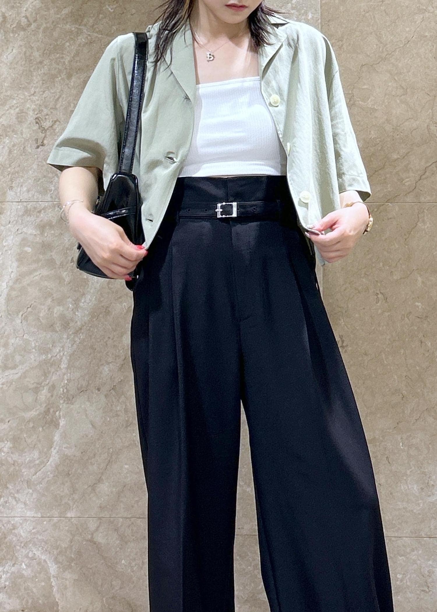 VIS【新色追加】【防シワ/接触冷感】ベルトディテールタックワイドスラックスパンツブラック / S¥6,589レビューサラサラでゆったりと履けるワイドシルエットのスラックスです。