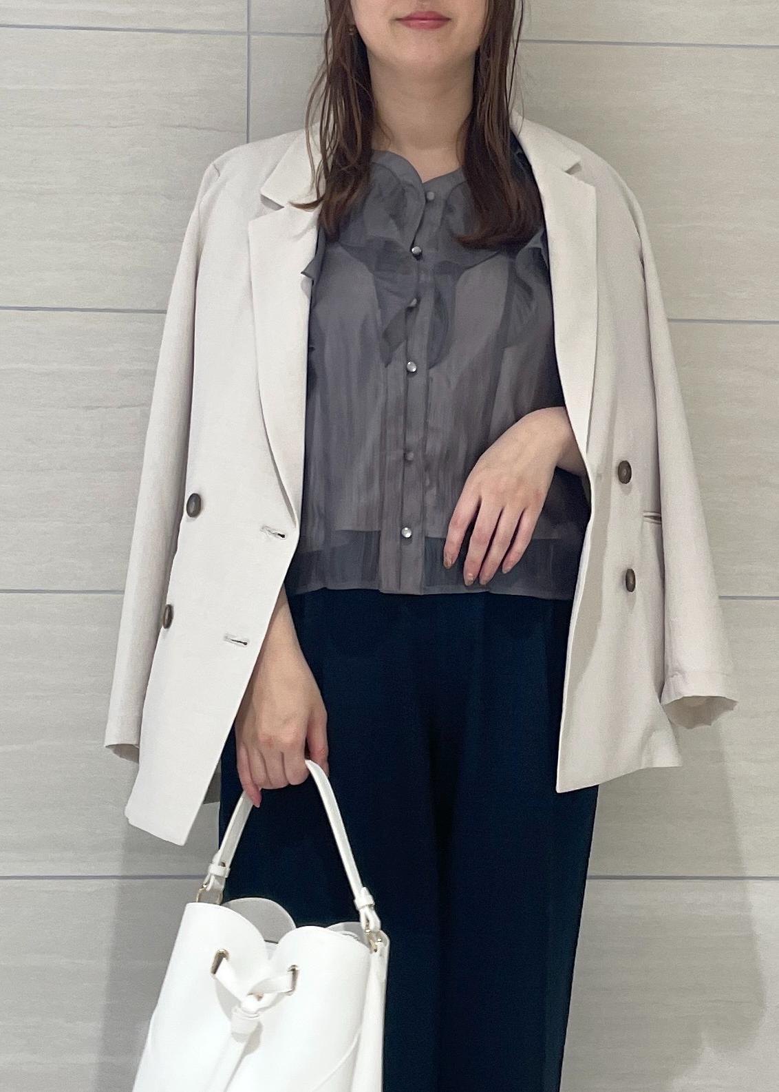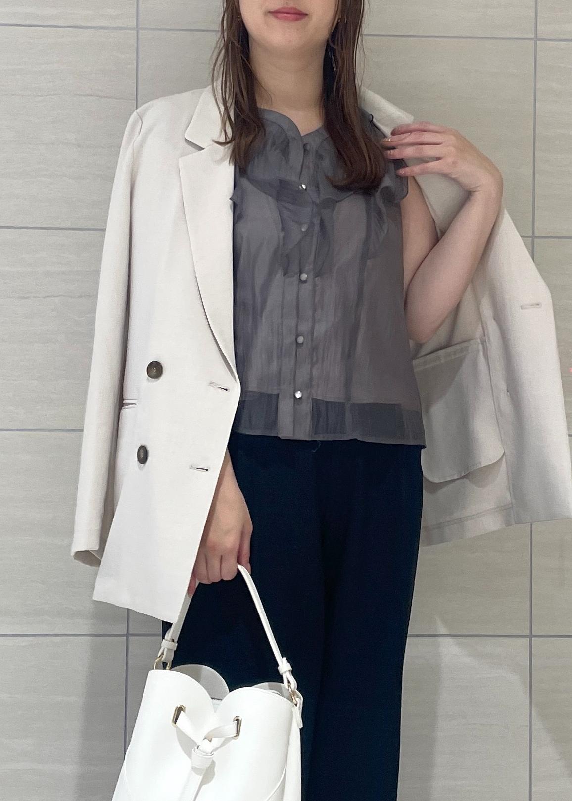 アウトレットVISシアーラッフルフリルブラウス/通勤対応チャコール / F¥3,842レビュー163cmで腰にかかるくらいの丈感なのでウエストアウトでもバランスよく着ていただけます◎