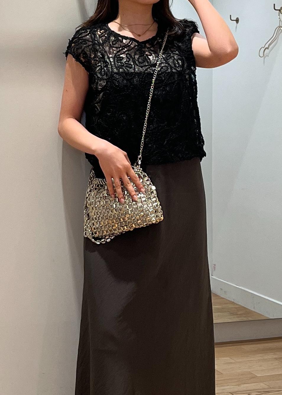 アウトレットVISコードレースシアーノースリーブプルオーバーブラック / F¥4,391レビュー着丈は腰位置でハイウエストなのでスタイルアップします。