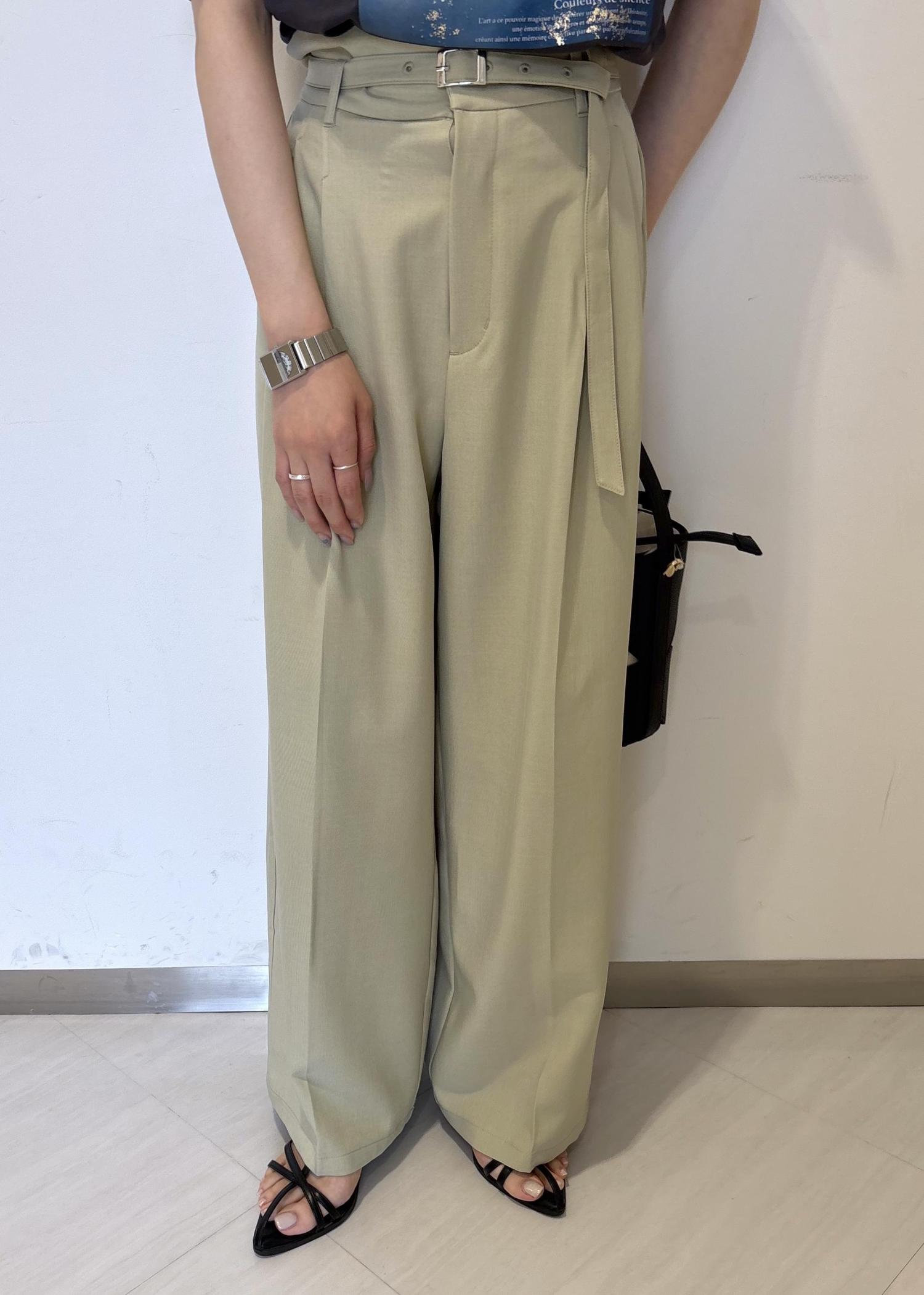 【新色追加】【防シワ/接触冷感】ベルトディテールタックワイドスラックスパンツ