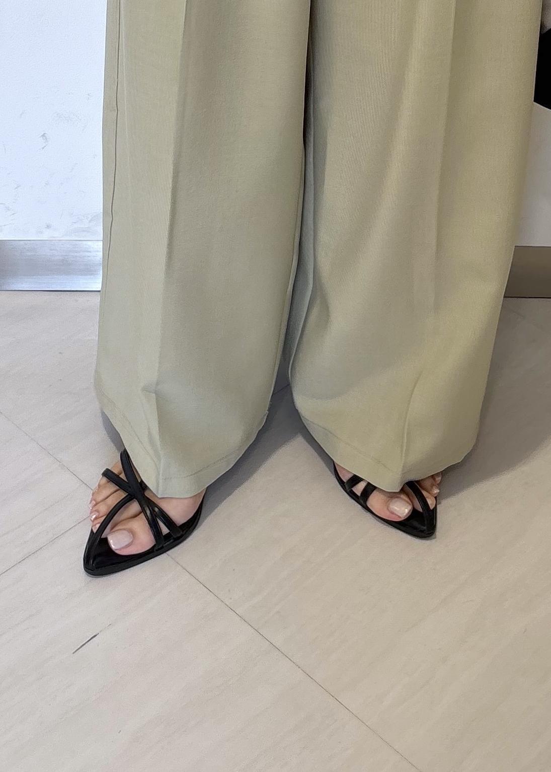 フラットシューズでもギリギリ床を擦らない長さですが、ヒール合わせだとよりスッキリシルエットでした◎