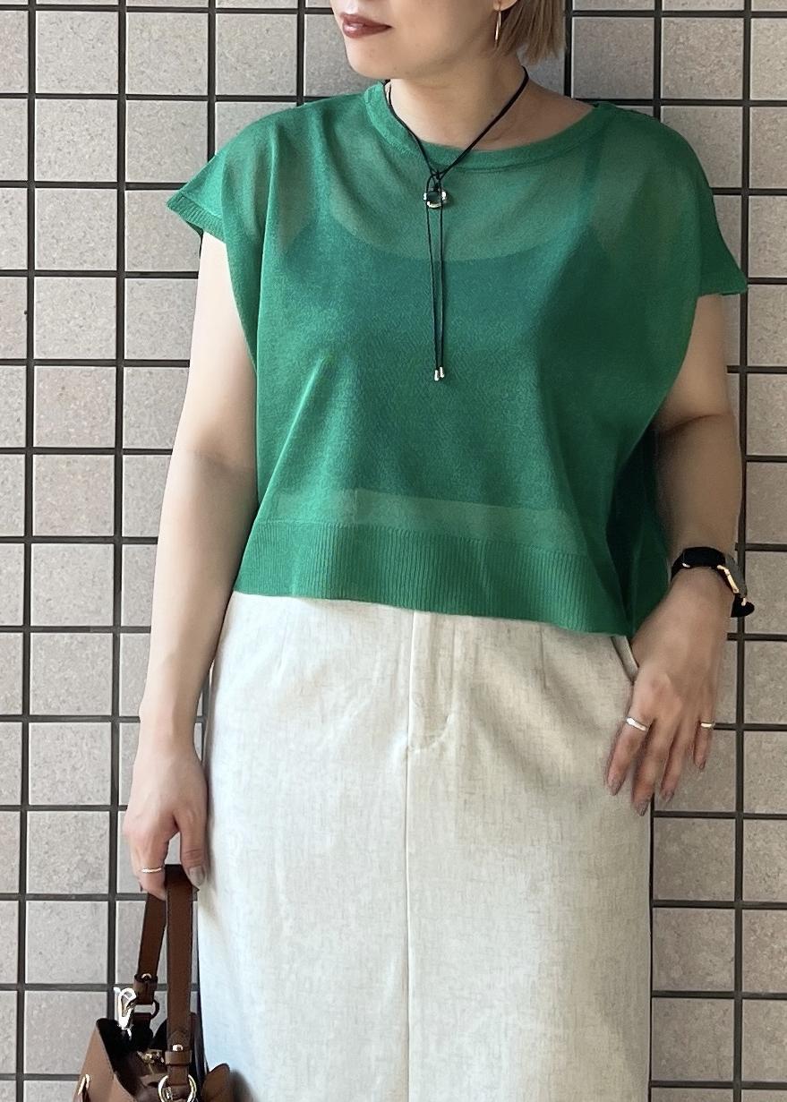アウトレットVISドライタッチシアーニットトップスグリーン / F¥2,195レビュー夏にピッタリのシアートップスは涼しげに着られます!