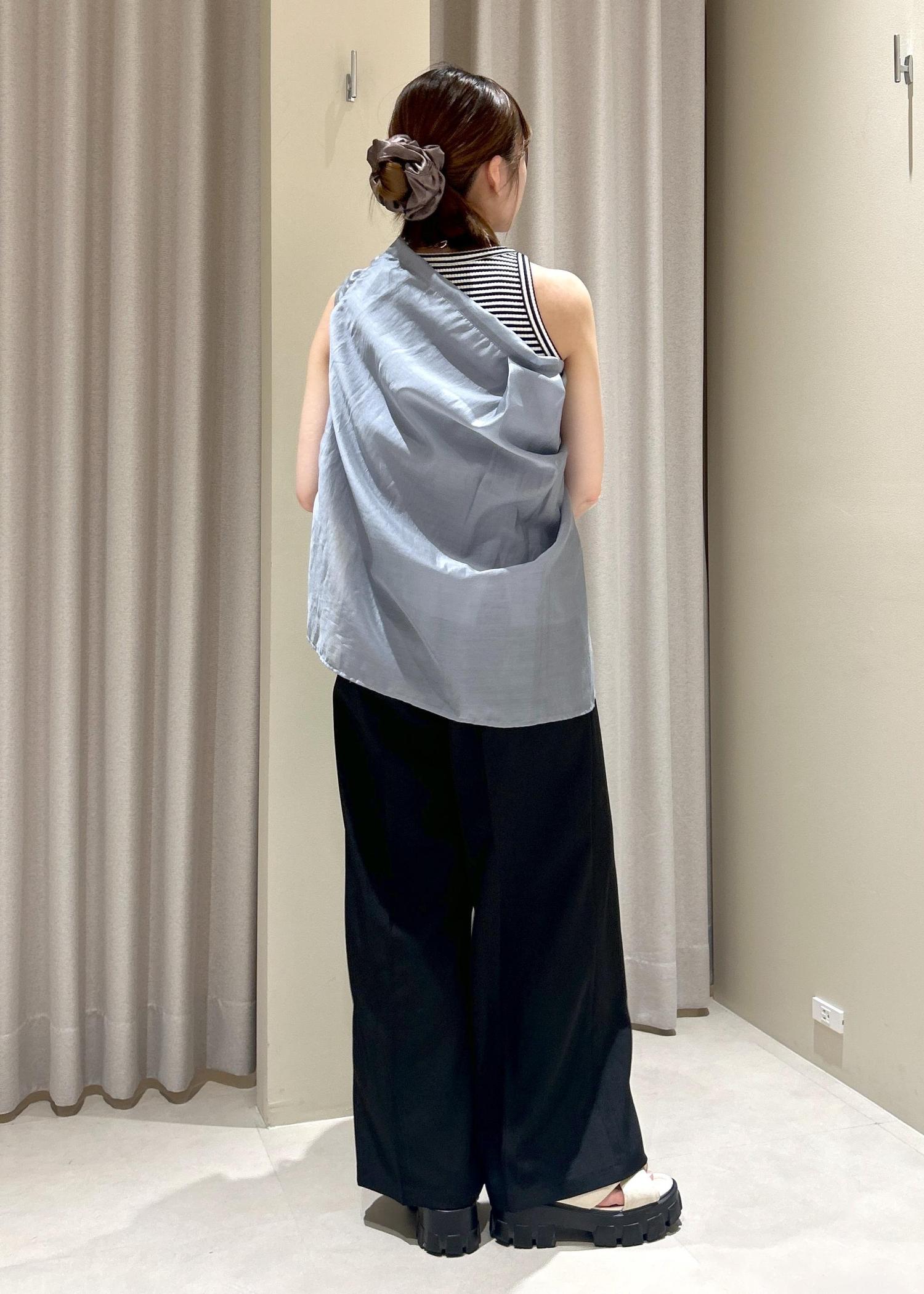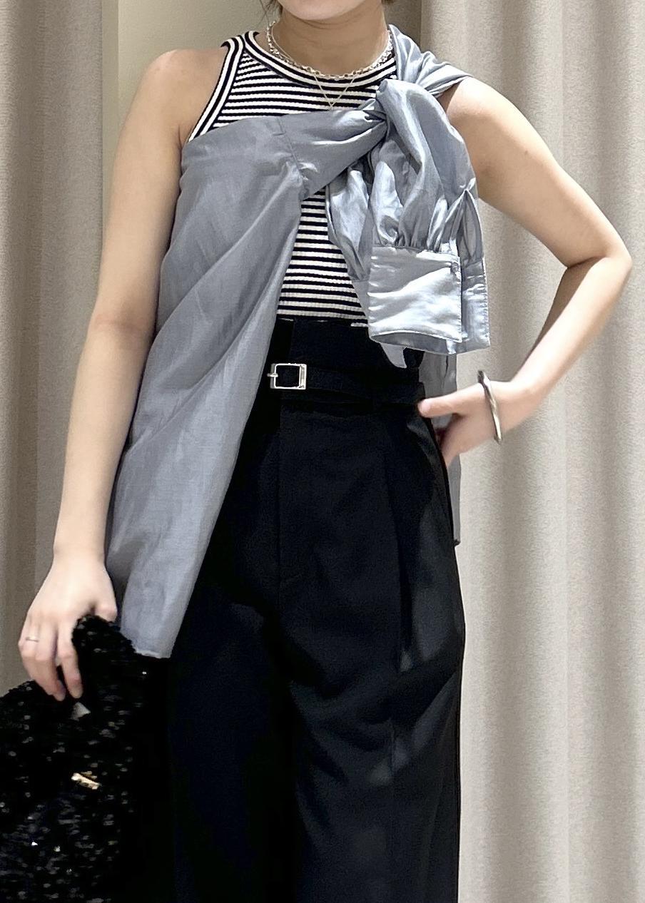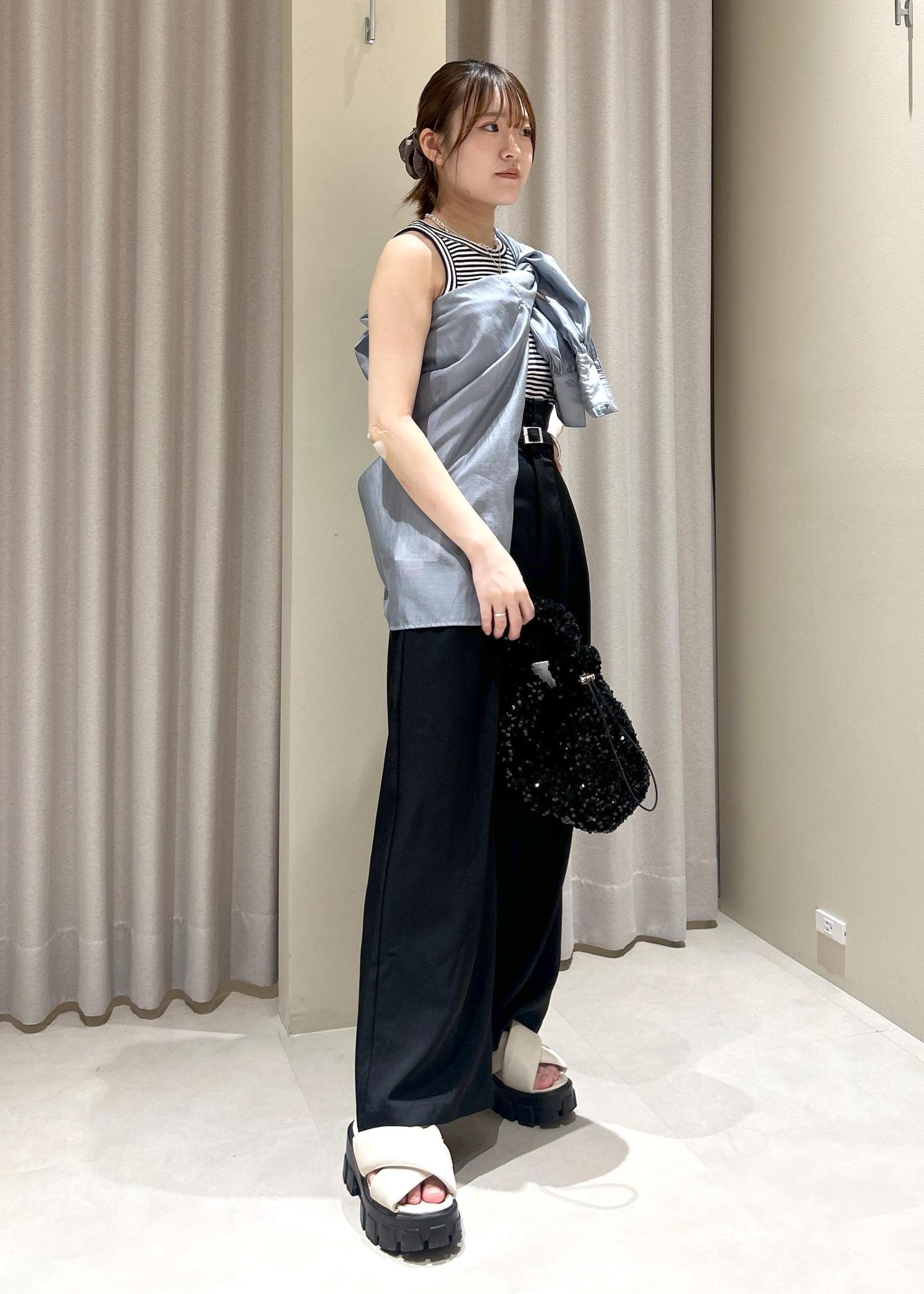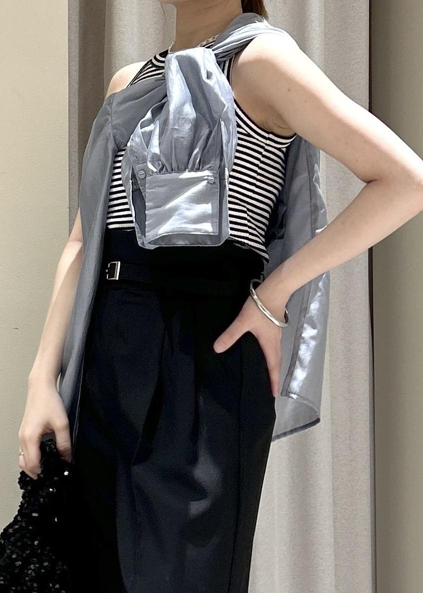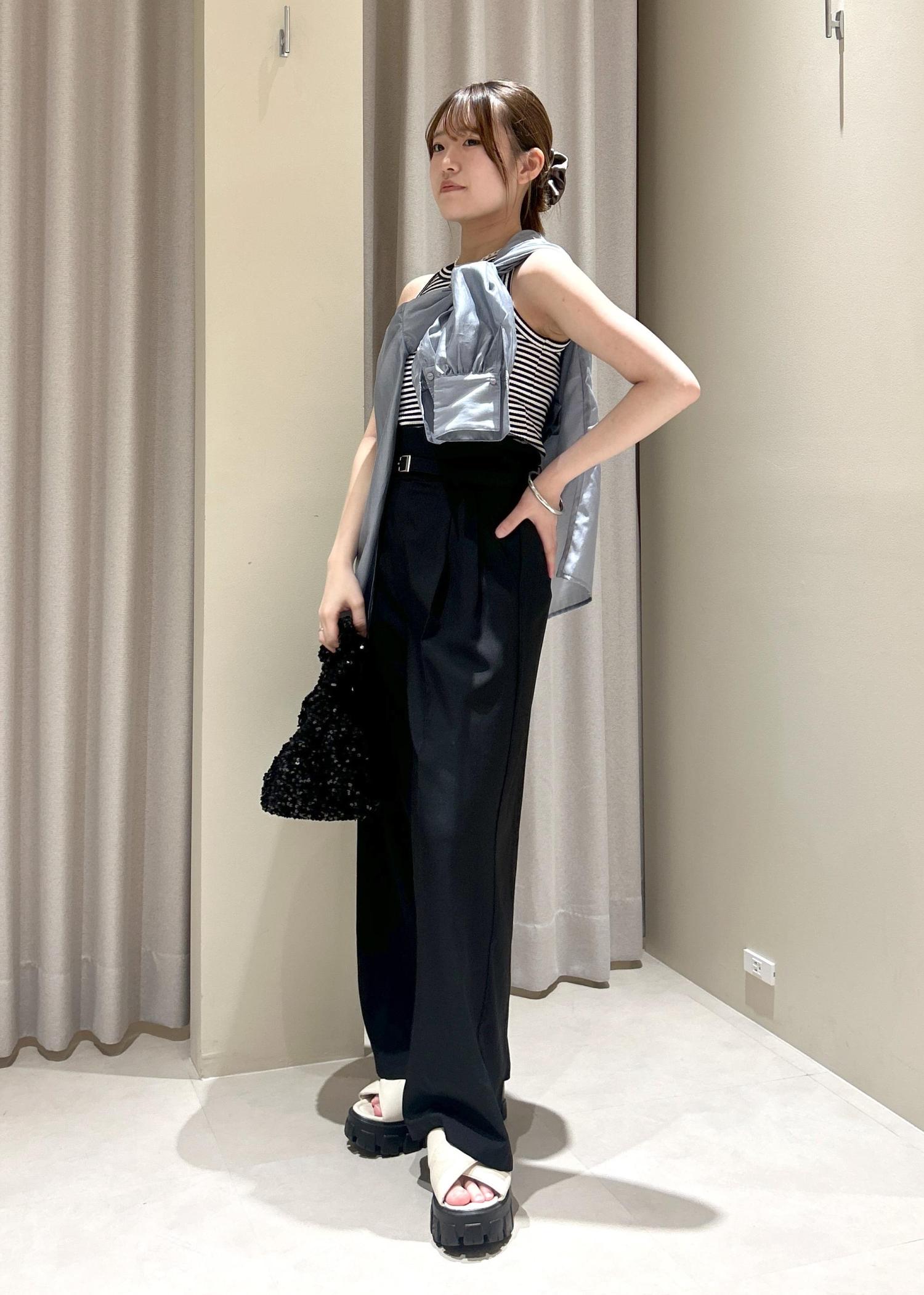 タックが足を綺麗に見せてくれるので、ブラウスはもちろん、Tシャツでも合わせやすいです。