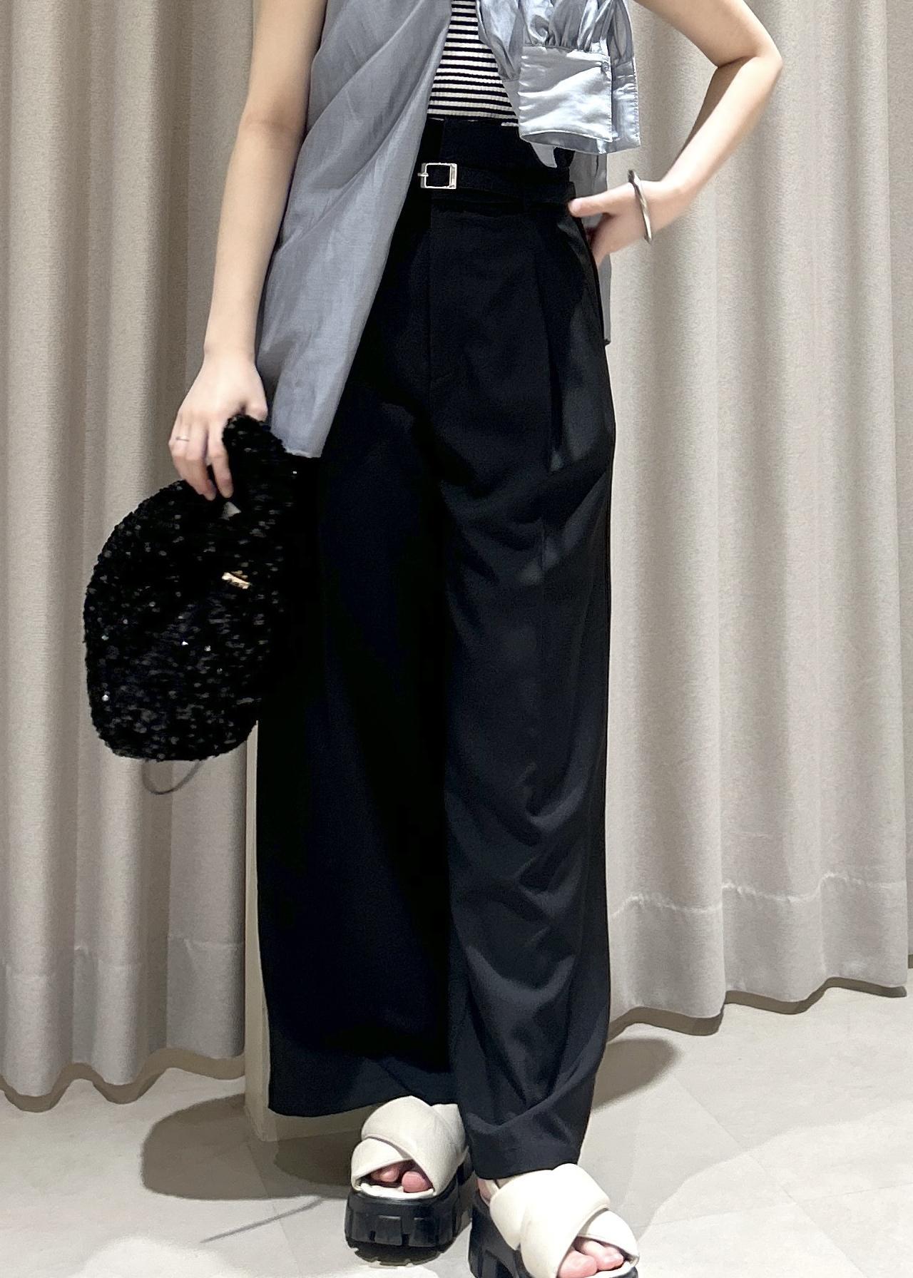 VIS【新色追加】【防シワ/接触冷感】ベルトディテールタックワイドスラックスパンツブラック / SS¥6,589レビューハイウエスでスタイルアップします。