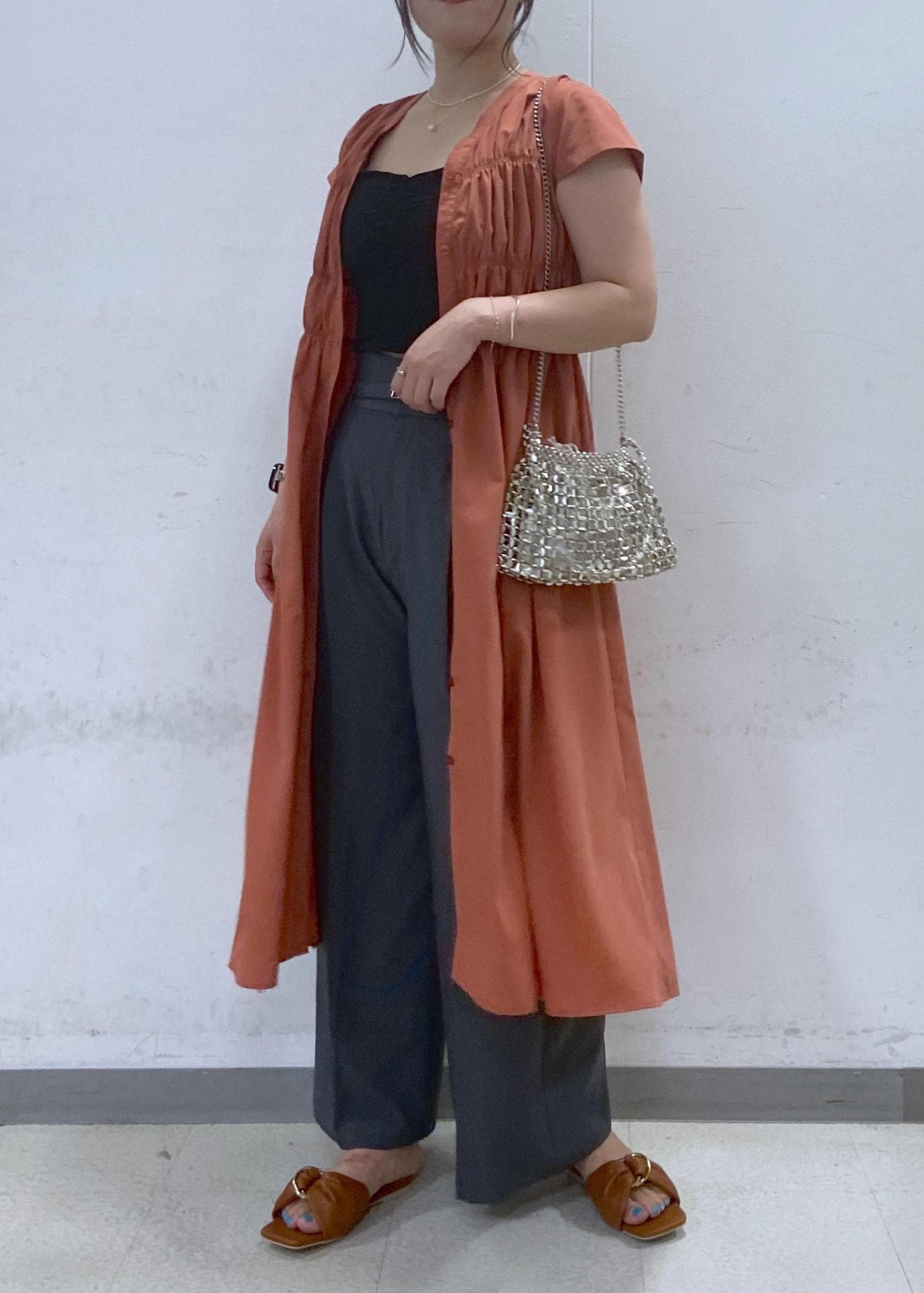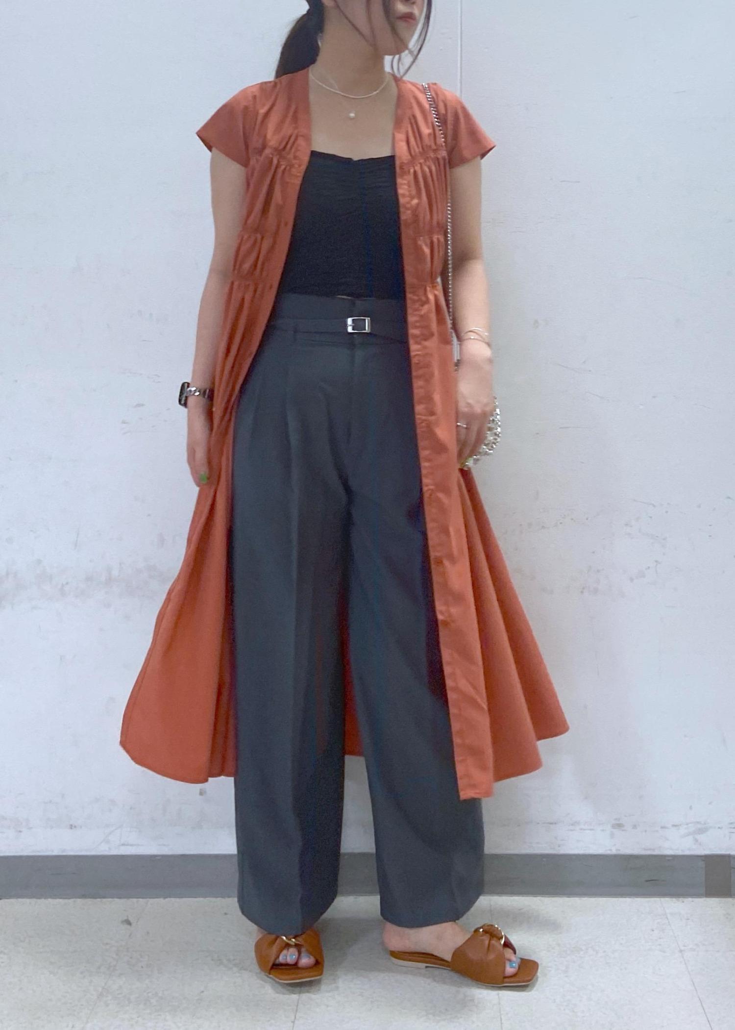 やや長めな丈感なのでトレンド感あるワイドパンツです。