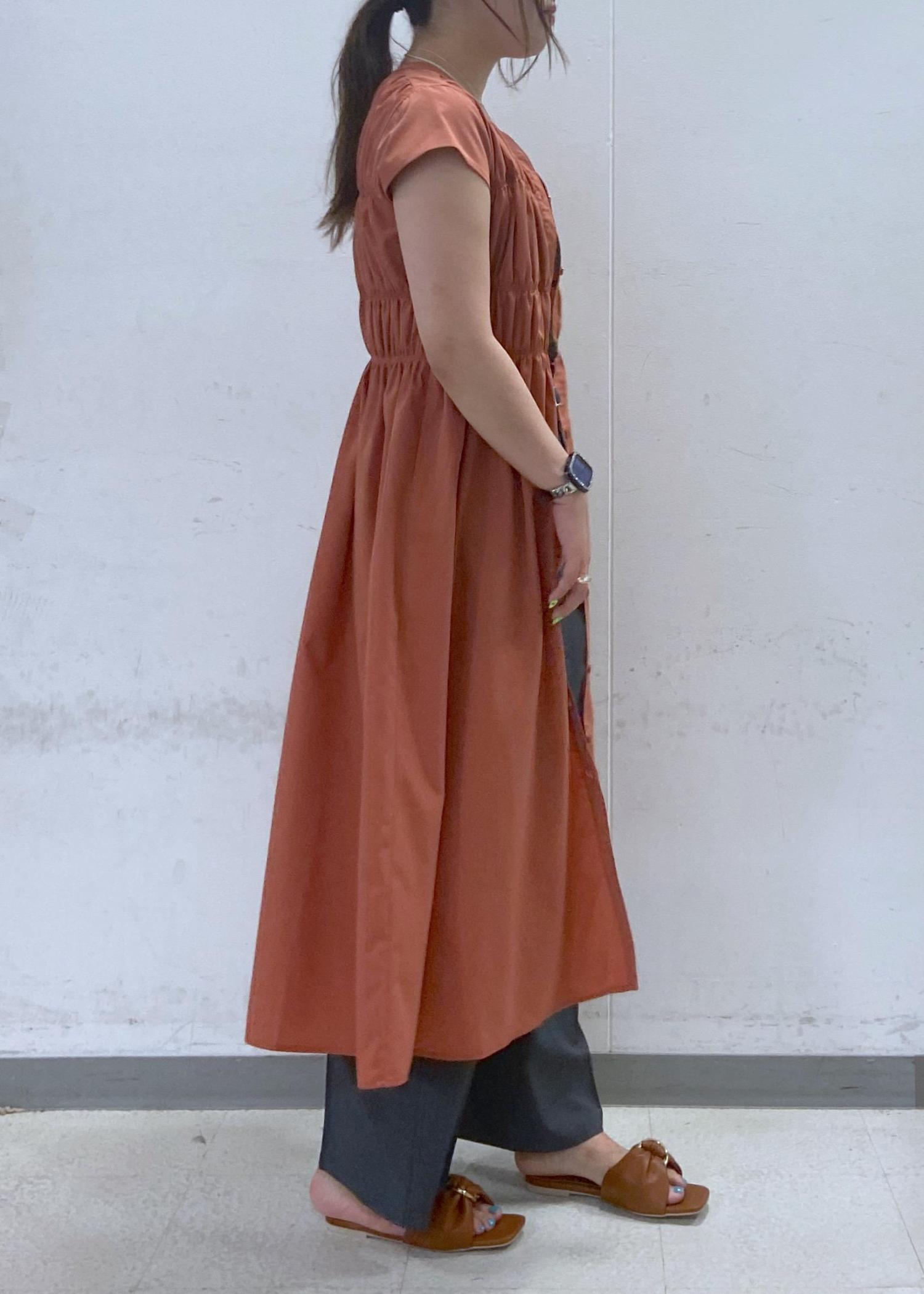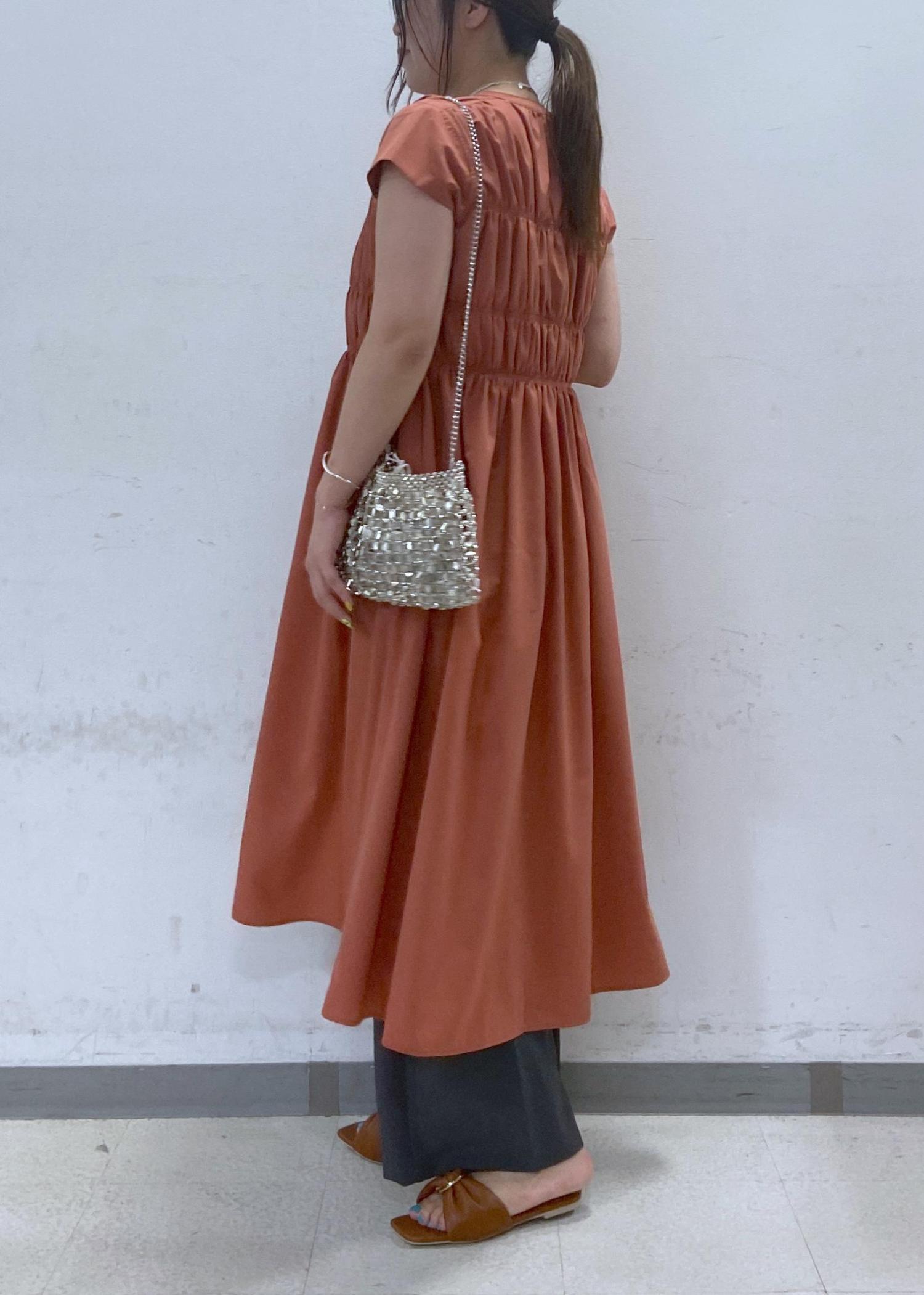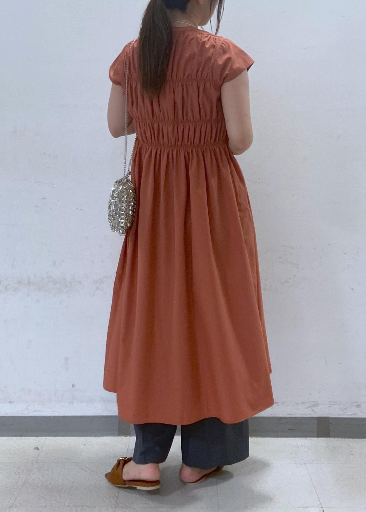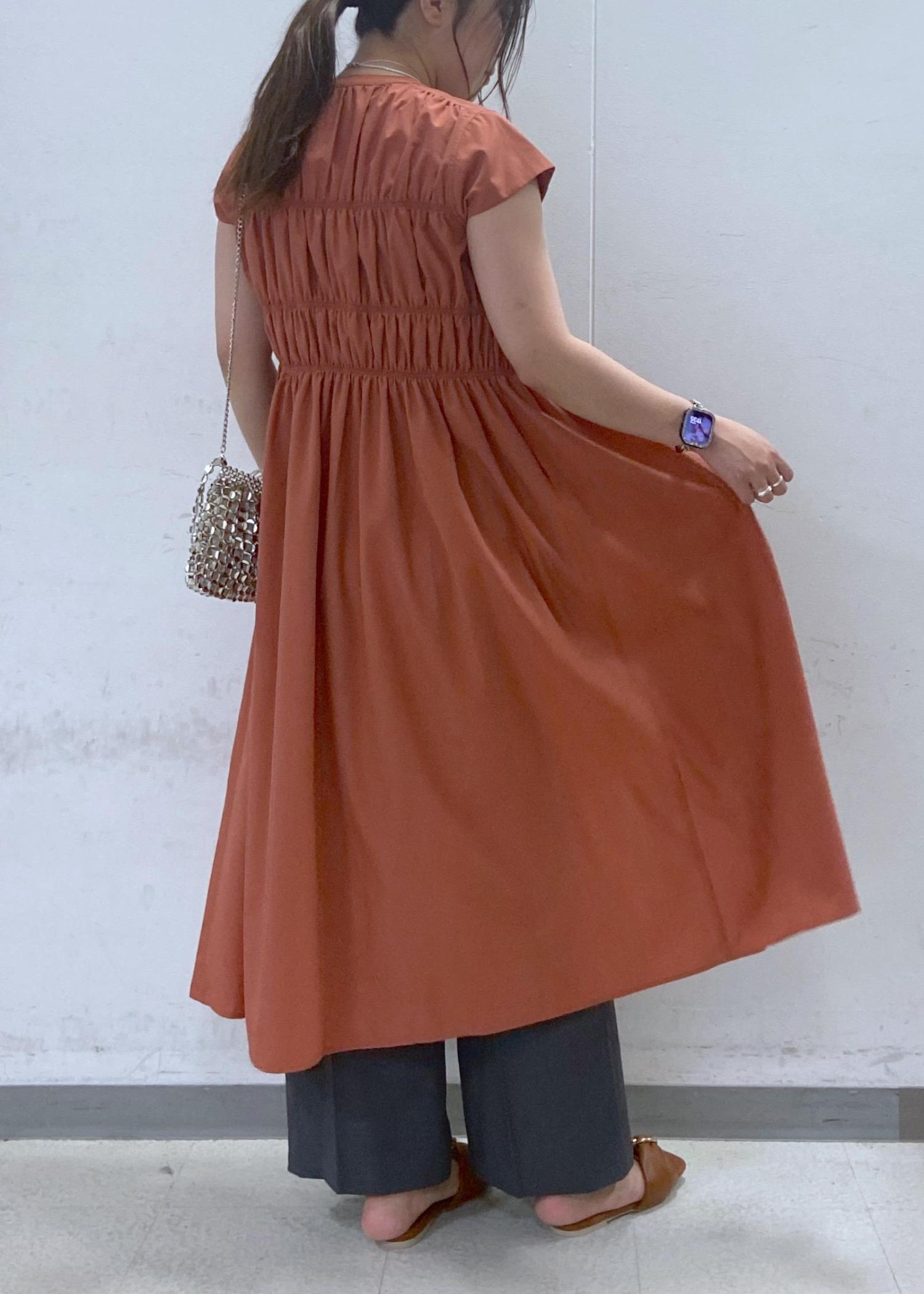 アウトレットVISシャーリングデザインワンピース【WEB限定サイズ】ダークブラウン系 / F¥3,955レビューふくらはぎの真ん中辺りまでの丈感なので、高身長さんはレイヤードスタイルもしやすい丈感です。