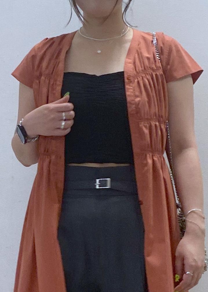 腕を上げてもインナーが見えにくい袖口でしたが、キャミソールなどを着用しておくとより安心です! -