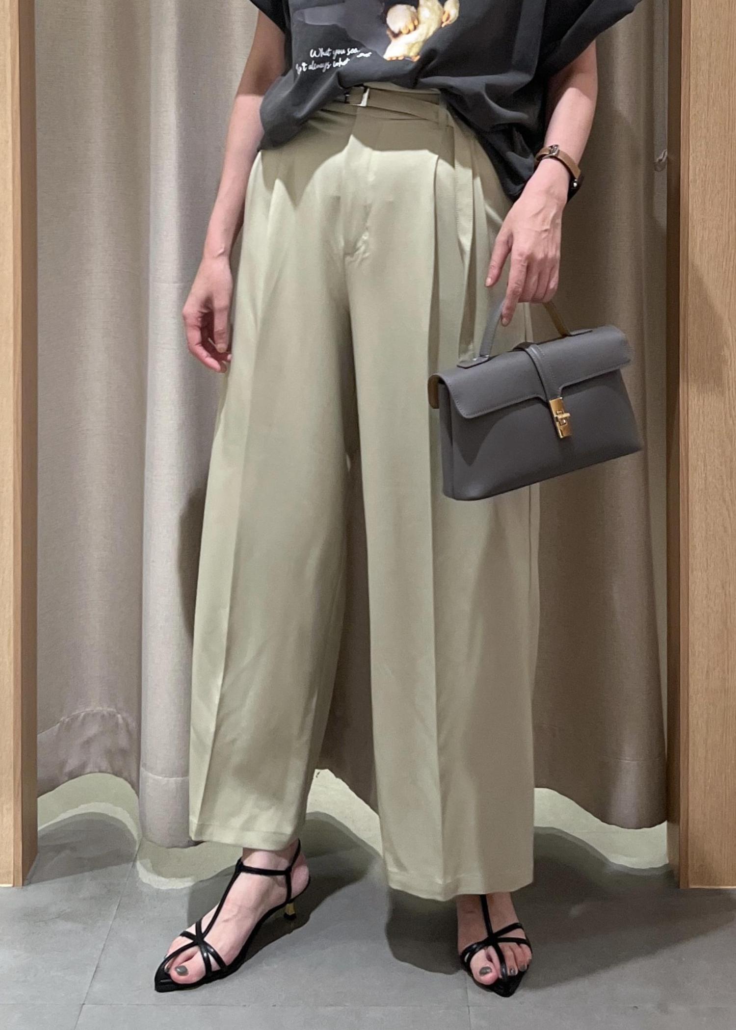 【新色追加】【防シワ/接触冷感】ベルトディテールタックワイドスラックスパンツ