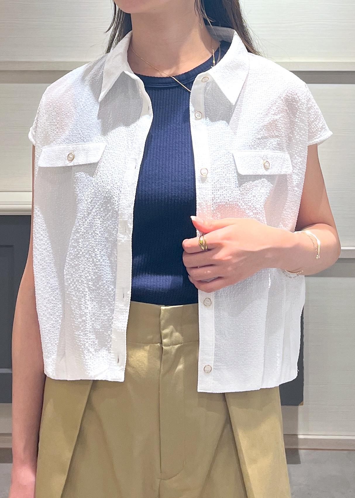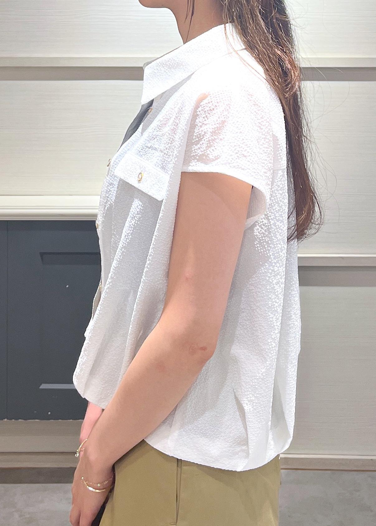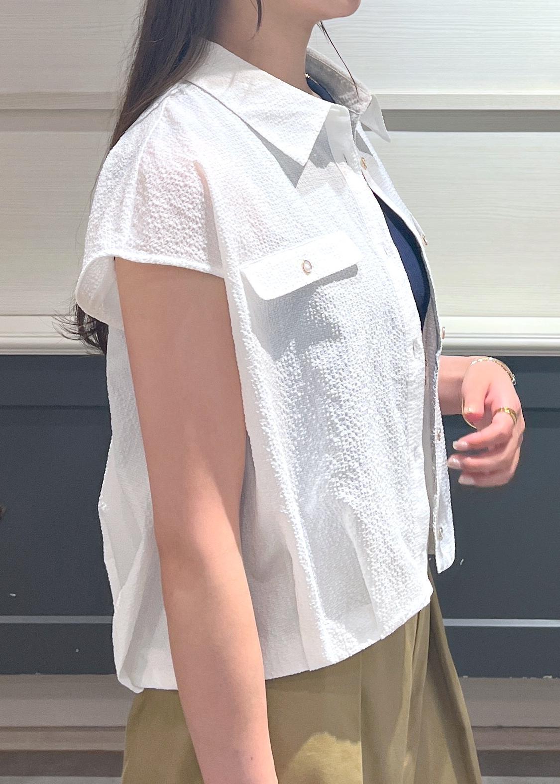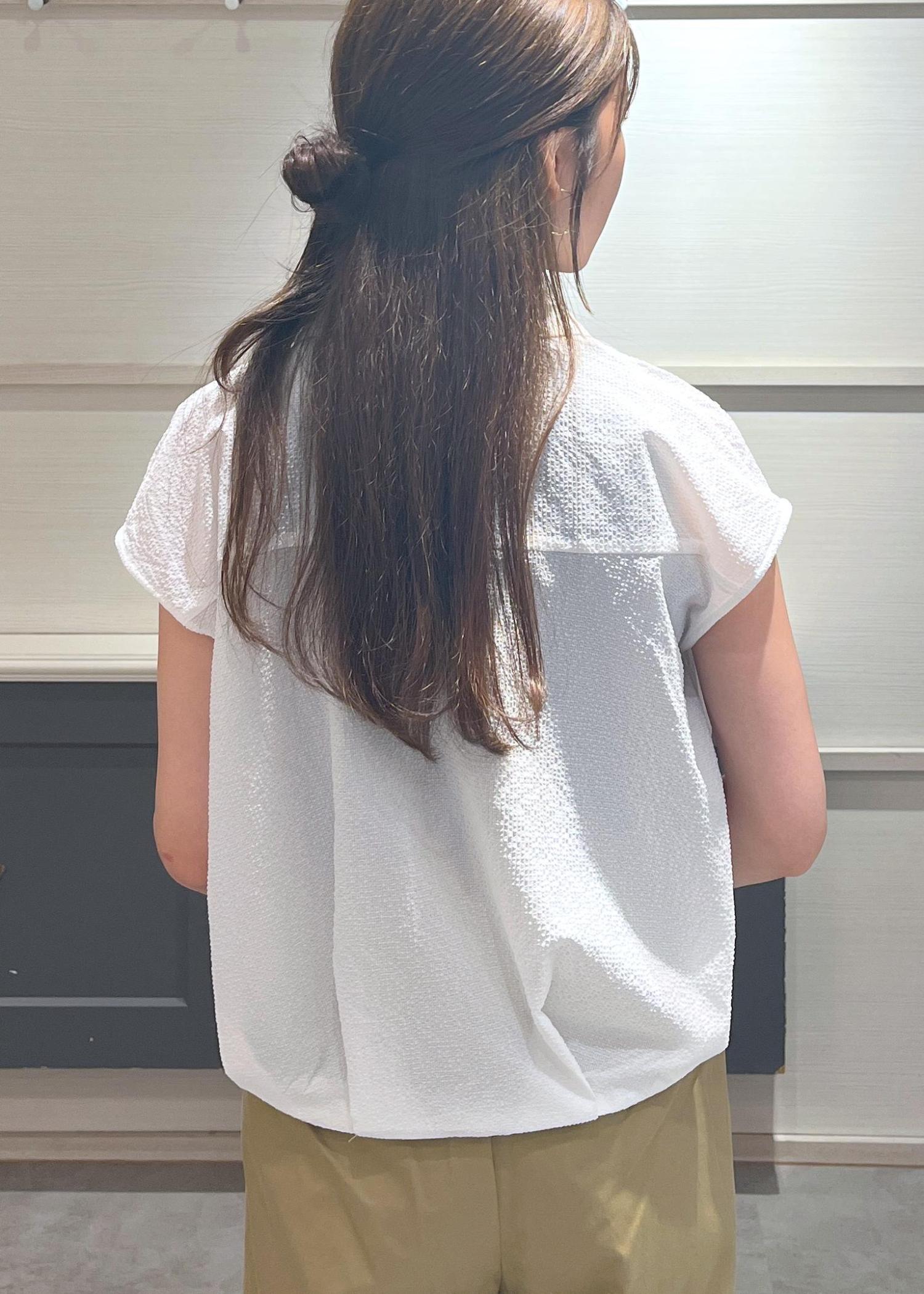 VIS【UVケア/洗える】フレンチスリーブサッカーブラウスホワイト / F¥4,389レビュー156cmで腰がしっかり隠れる丈感です。