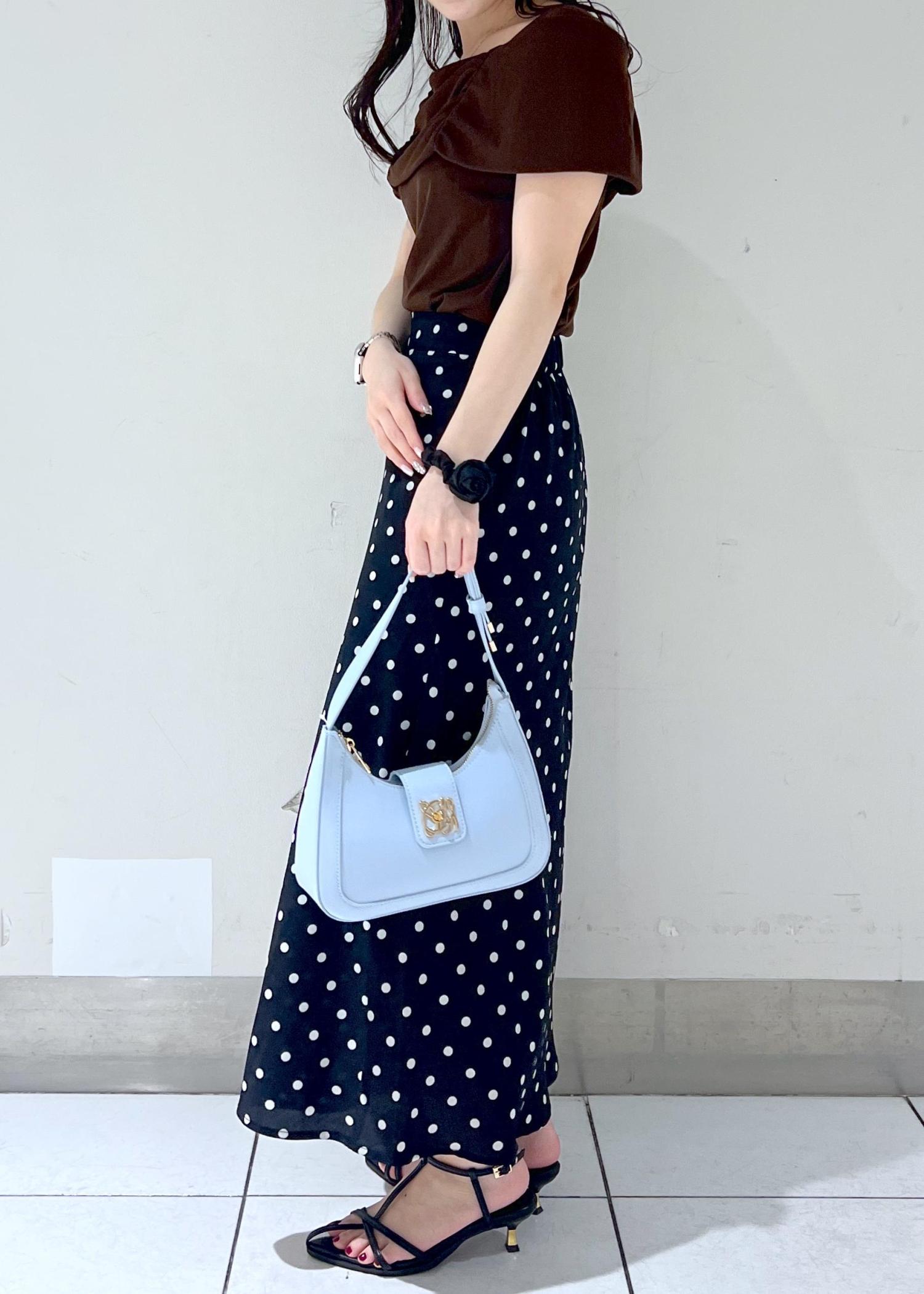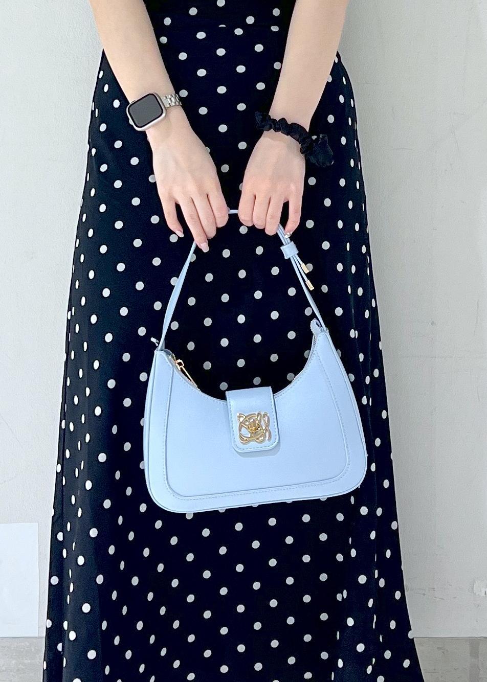 VIS【新色追加】【180℃美人見え】ハンドルリボンワンショルダーバッグサックス / F¥5,929レビュー肩にかけても脇にしっかりフィットして、軽いので持ちやすいです!ゴールドのポイントが大人っぽさをプラスできます♪