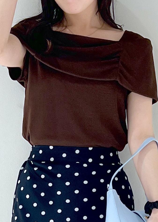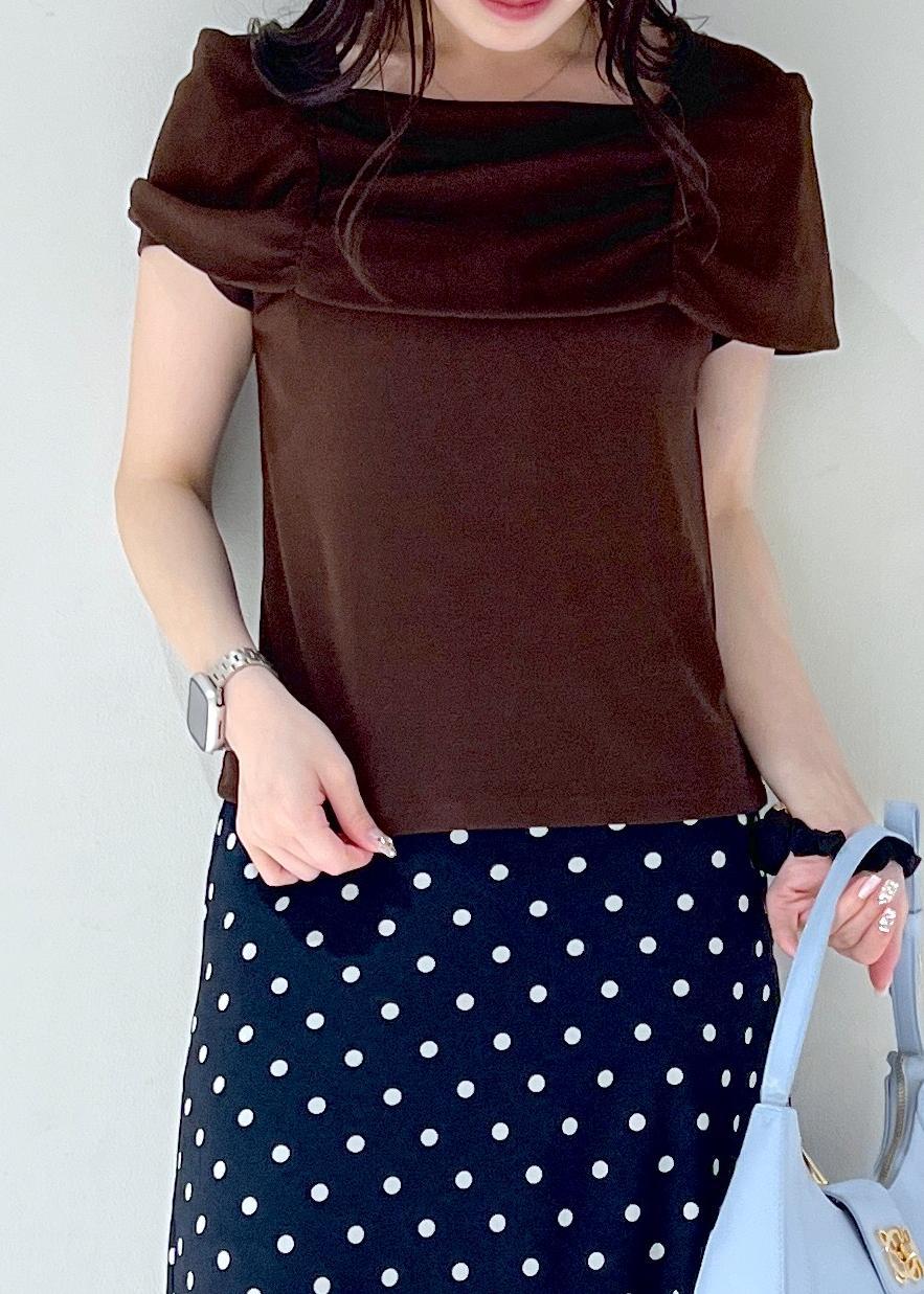 VISオフショルダーテレコカットソープルオーバーダークブラウン / F¥4,389レビューオフショル風のトップスで肩にマチがついてる為インナーに迷わないのと、ズレてくるストレスもなくオススメです!