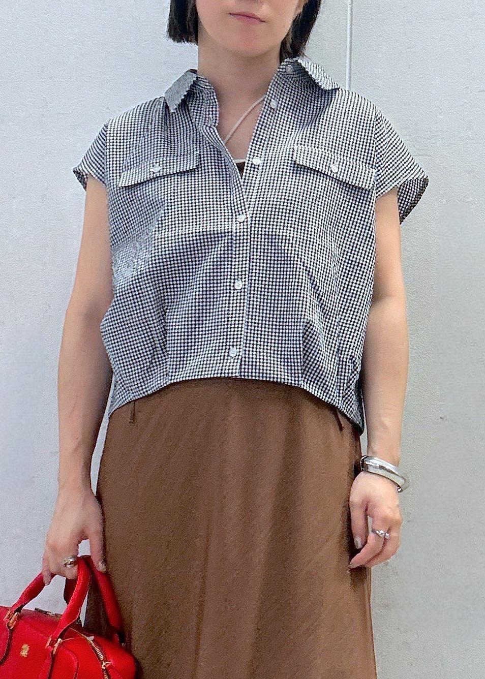 VIS【UVケア/洗える】フレンチスリーブサッカーブラウスブラック系 / F¥4,389レビュー程よくゆとりがあり、裾にタックが入っているので、インしなくても収まりが良いです。軽くてサラッとした肌触りです。