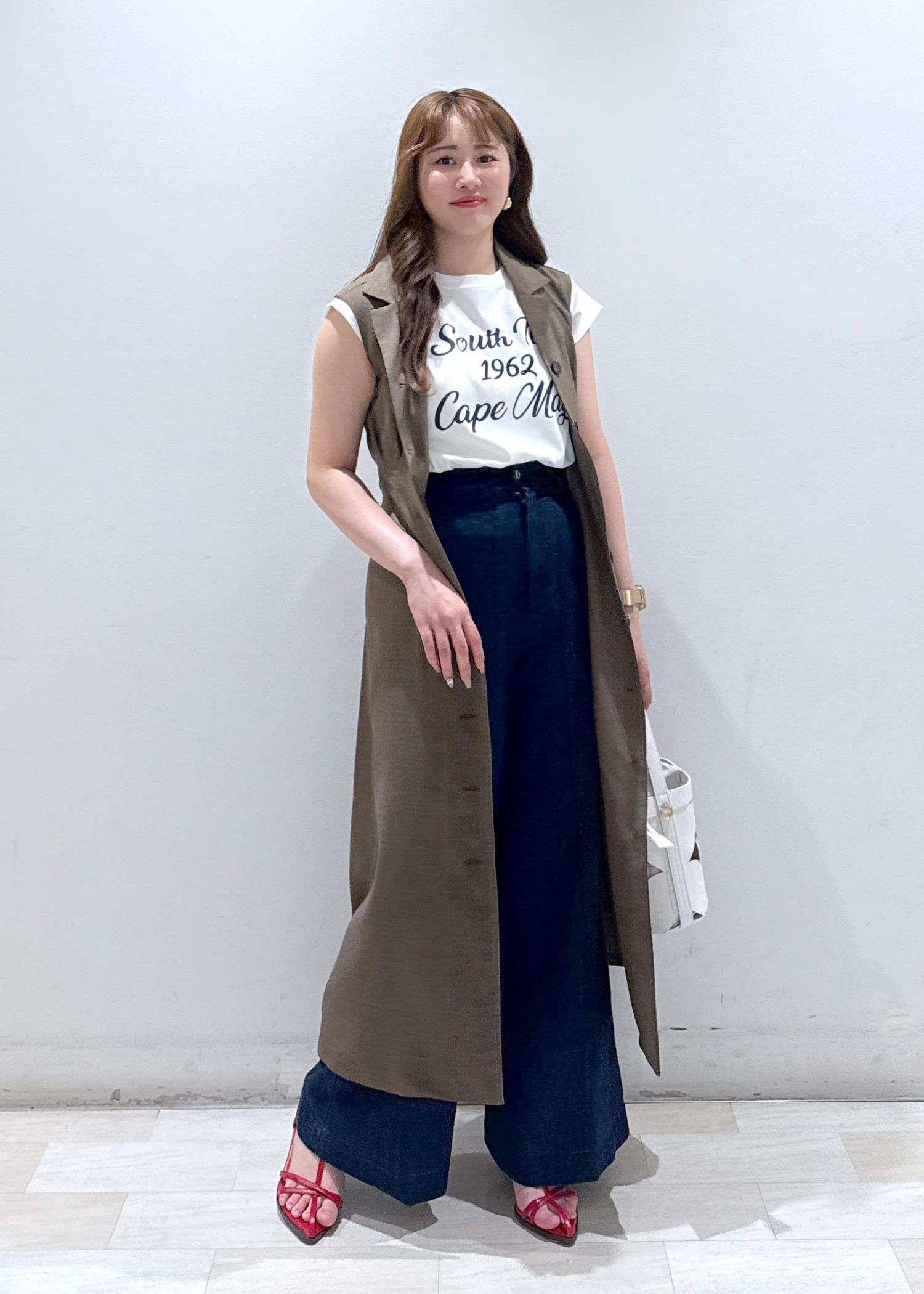 中には王道であるシンプルなTシャツにデニムと合わせてカジュアルに、ジレをプラスに合わせることで一気にお洒落感が出ます!