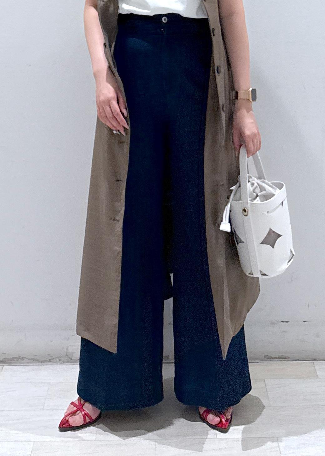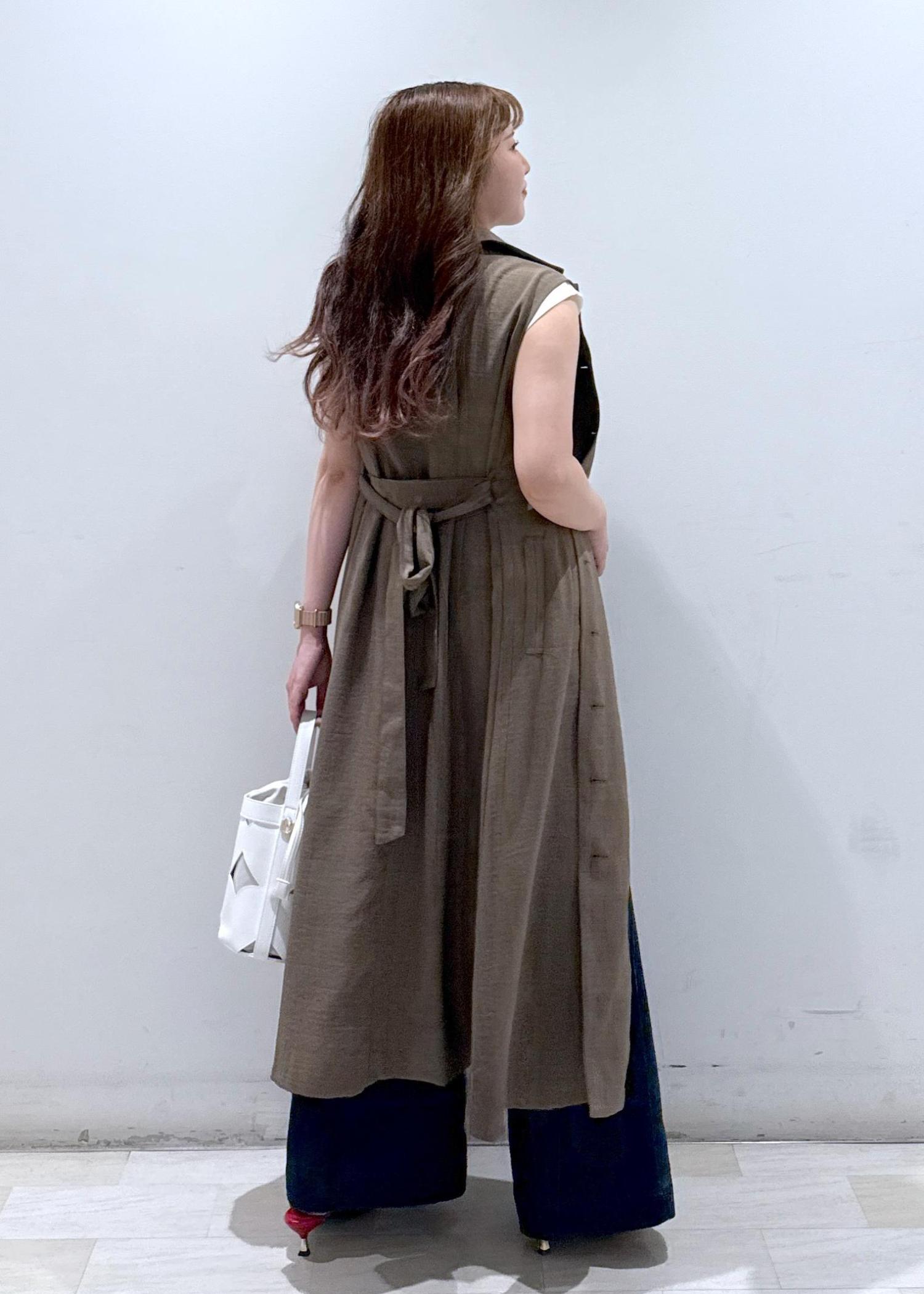 接触冷感付きのサラッとした涼しげな素材のワンピースを前開きにして、ジレのように羽織ってみました♪