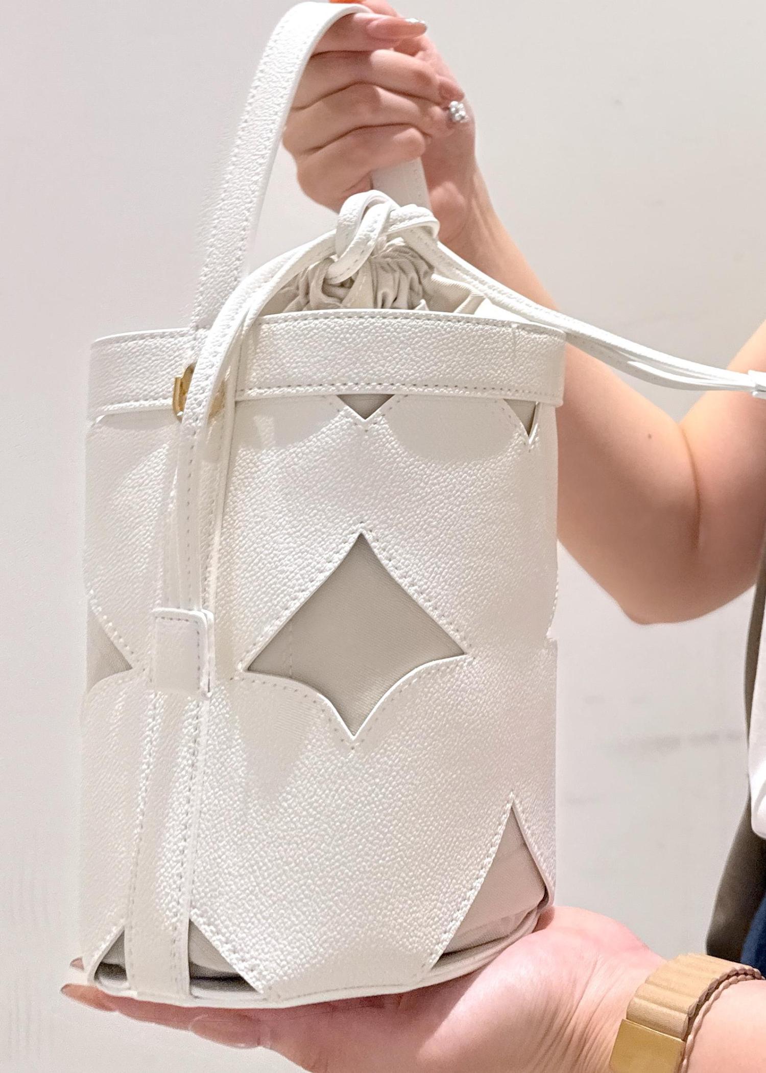 アウトレットVISカットワーク2WAYバッグホワイト系 / F¥4,843レビュー中が見えないように巾着付きになっていて安心しました!ショルダー紐もセットで付いているので気分によって変えることができます。バケツ風な小さめなバッグなので、手荷物が少ない時にオススメです♡