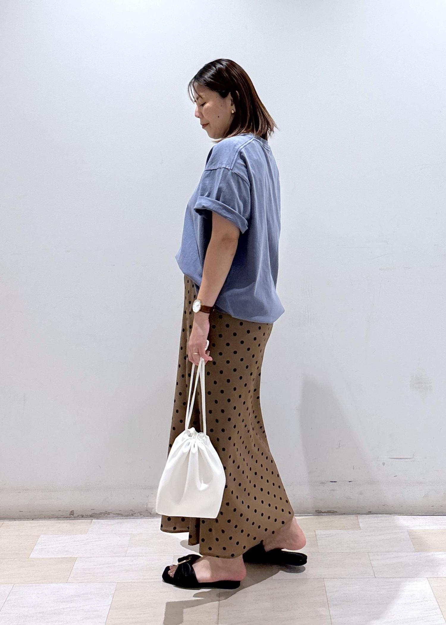 ドレープ性のある薄手のポリエステル素材なので、動く度に裾がひらひらとなりシルエットも綺麗です。 -