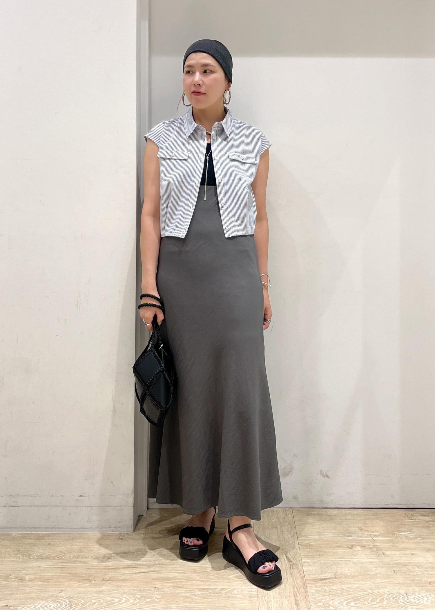 アウトレットVISバイヤス仕立てナローキャミワンピースチャコール / F¥3,076レビューさらっとした素材感で涼しく着れる!