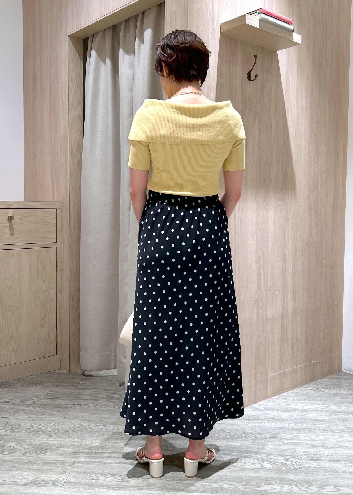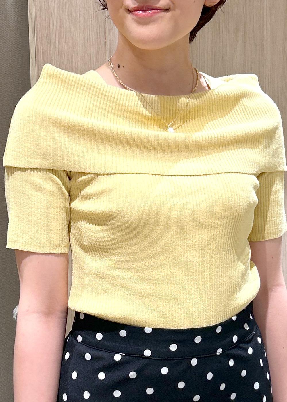 VIS【アンチピリング/UVケア/洗える】オフショルハーフスリーブニットイエロー系 / F¥4,939レビュー肩の部分に生地があるので、インナーを気にせずに着られるオフショル風トップスです。