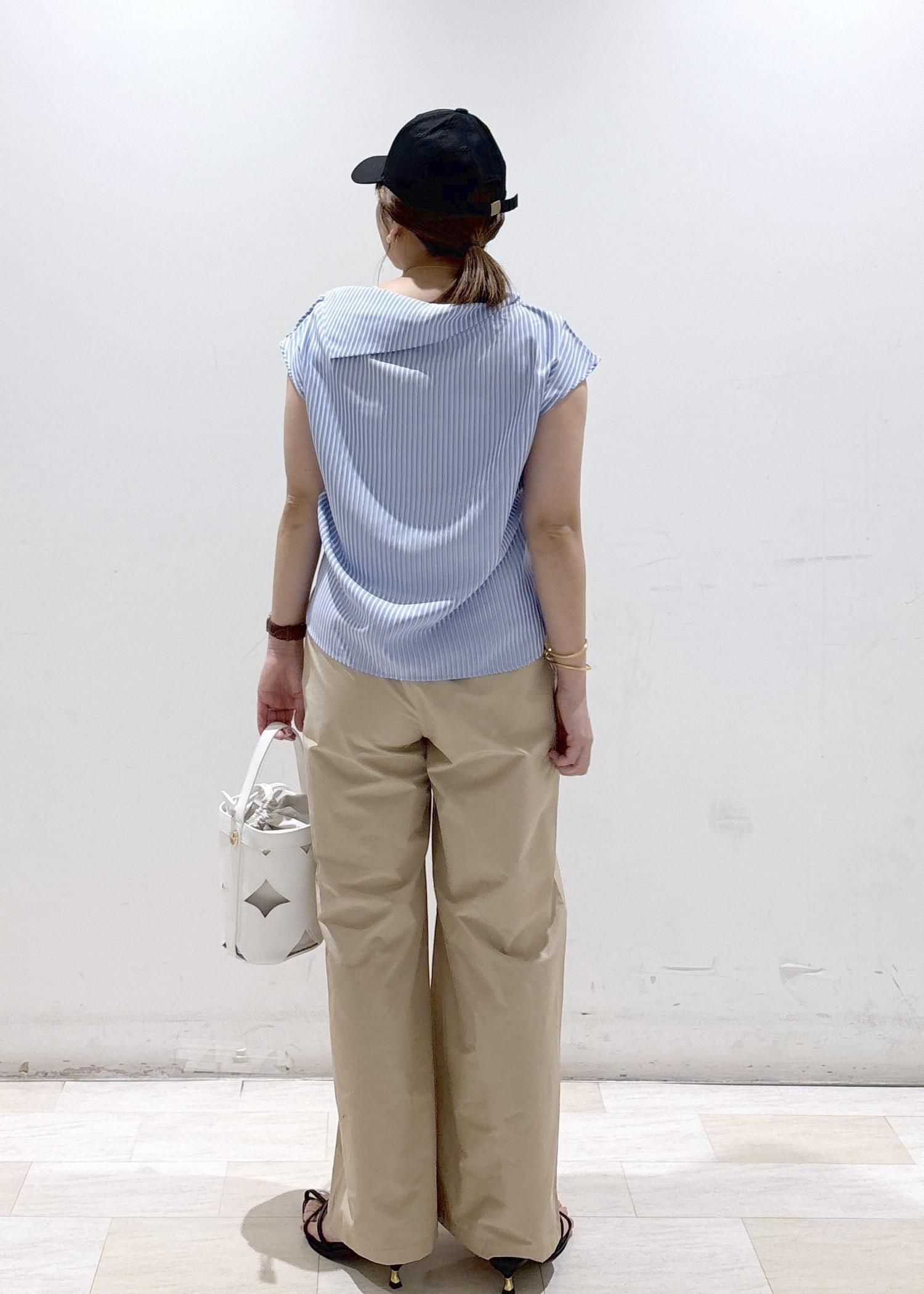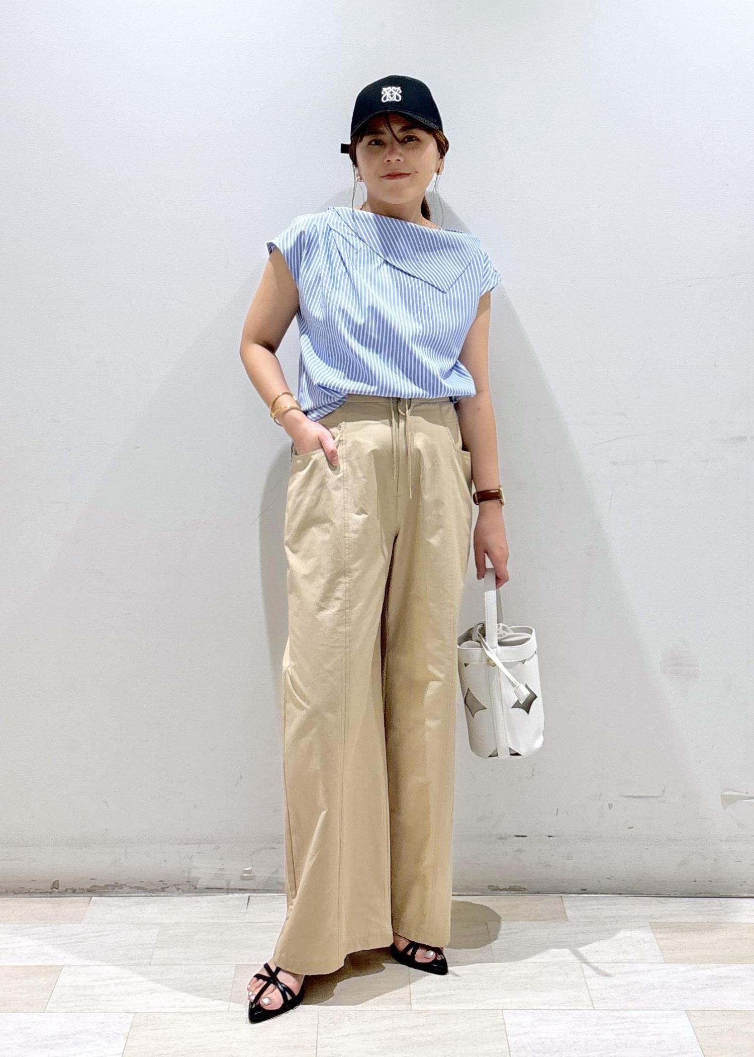 ウエストはドロストコードで調整でき、ストレートワイドのすっきりとしたシルエットなので骨格ウェーブさんにオススメです。