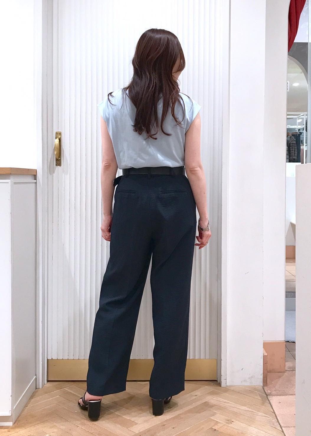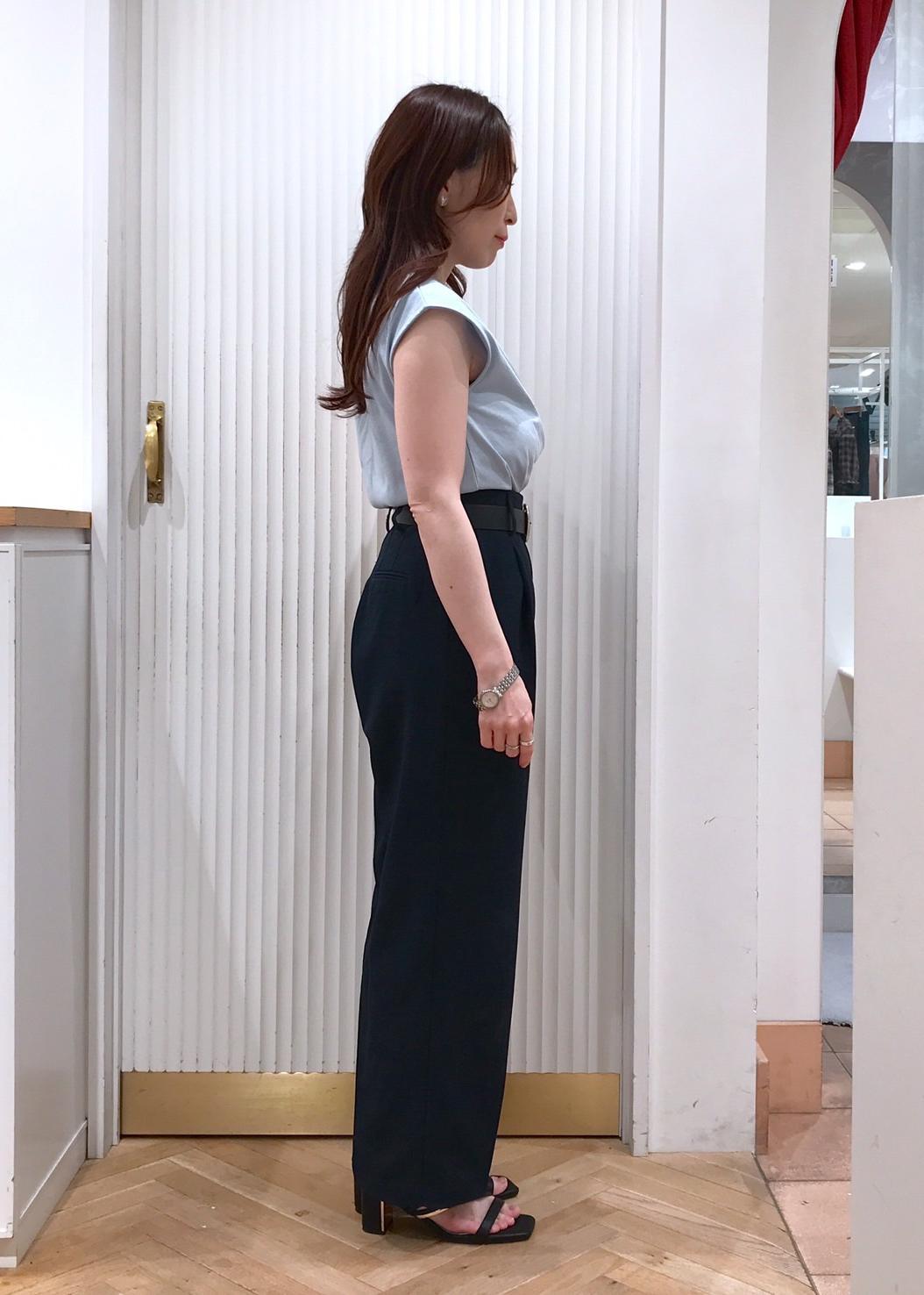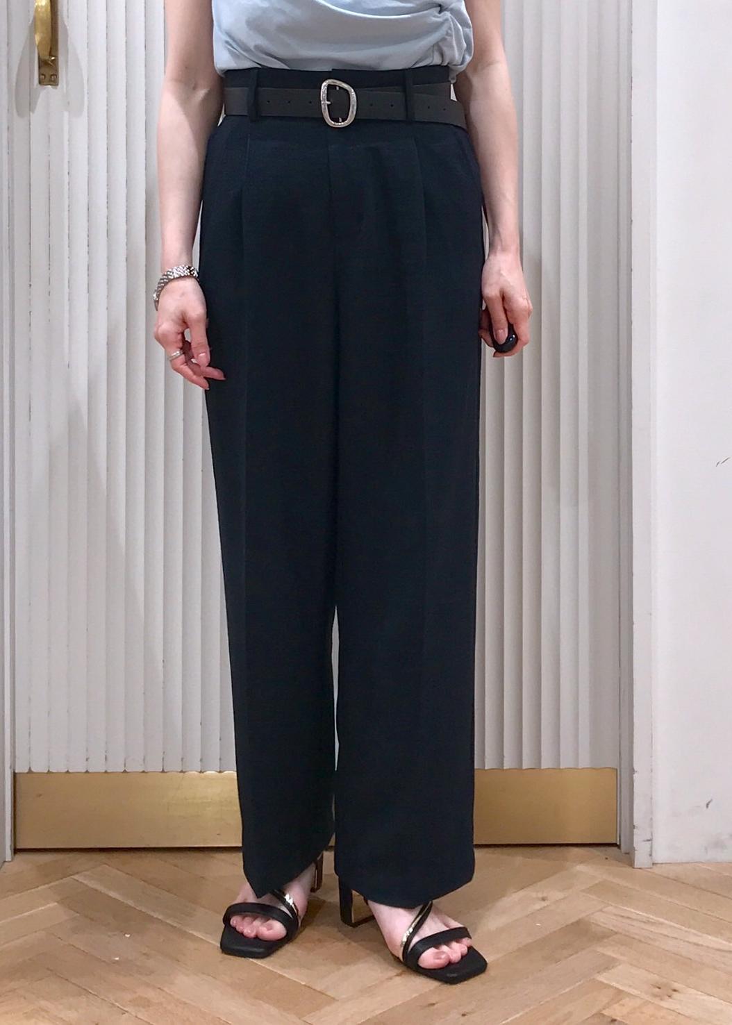 シンプルなスタイリングなので太ベルトでポイントを作っています。