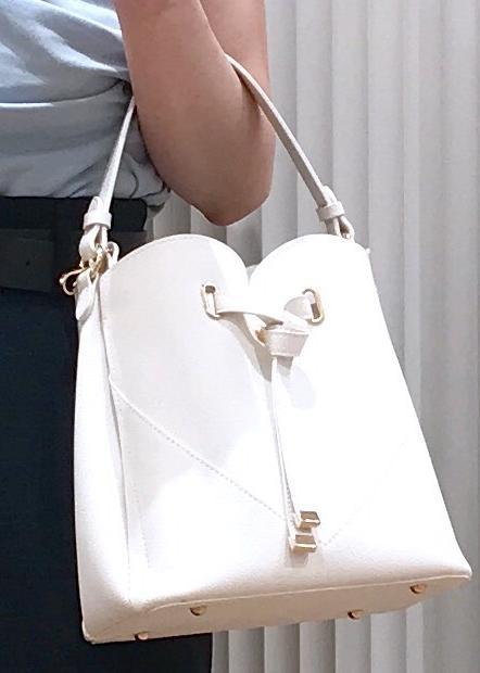 短いストラップはコートを着た状態でも肘に掛けられるくらいの長さです。