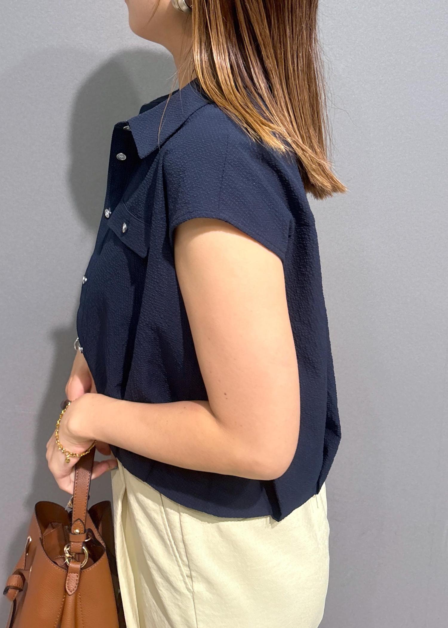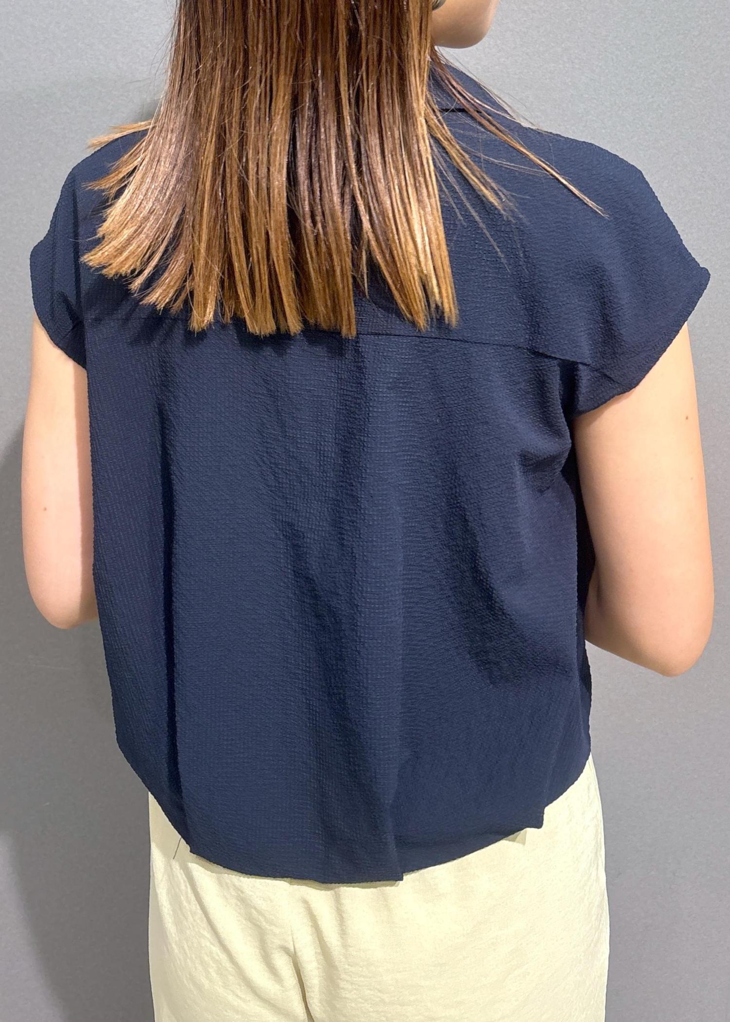 VIS【UVケア/洗える】フレンチスリーブサッカーブラウスネイビー系 / F¥4,389レビューとっても軽くてとっても涼しいです!