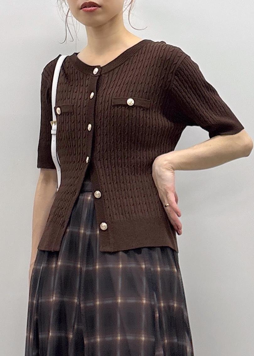 【WEB限定】エンブレム金釦5分袖ケーブルカーディガン