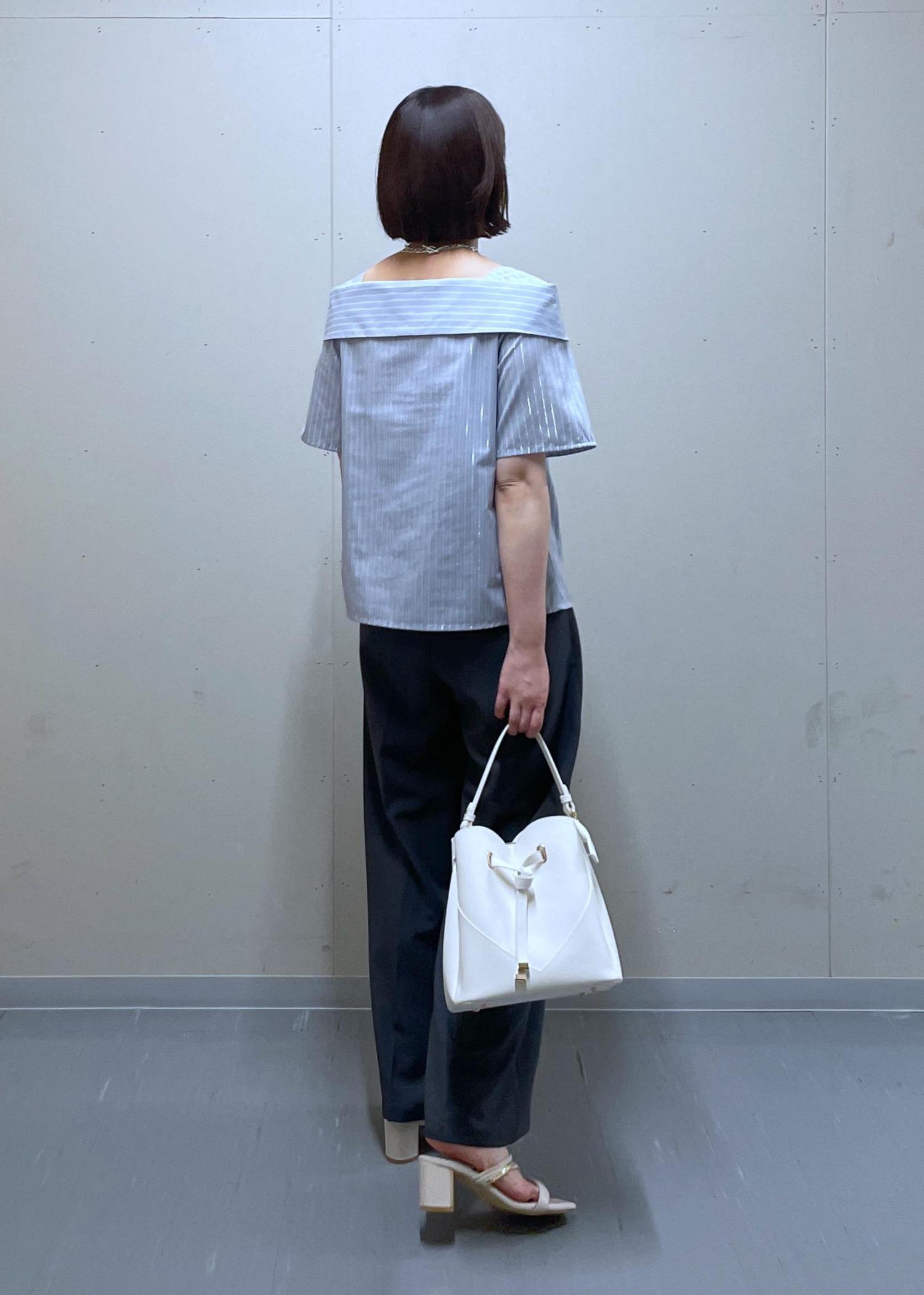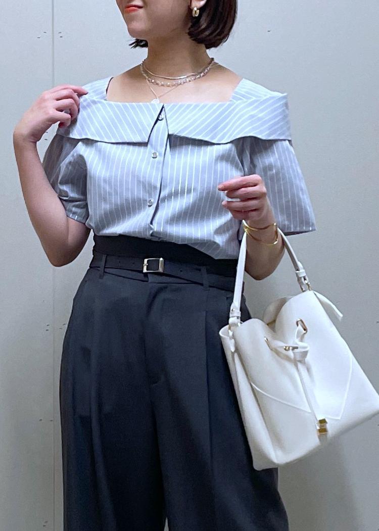 VIS【新色追加】【防シワ】ラメミックスオフショルダー風ストライプシャツライトグレー / F¥5,489レビュー少し張り感のあるお素材で、カジュアルにもきれい目にも合わせやすいです。
