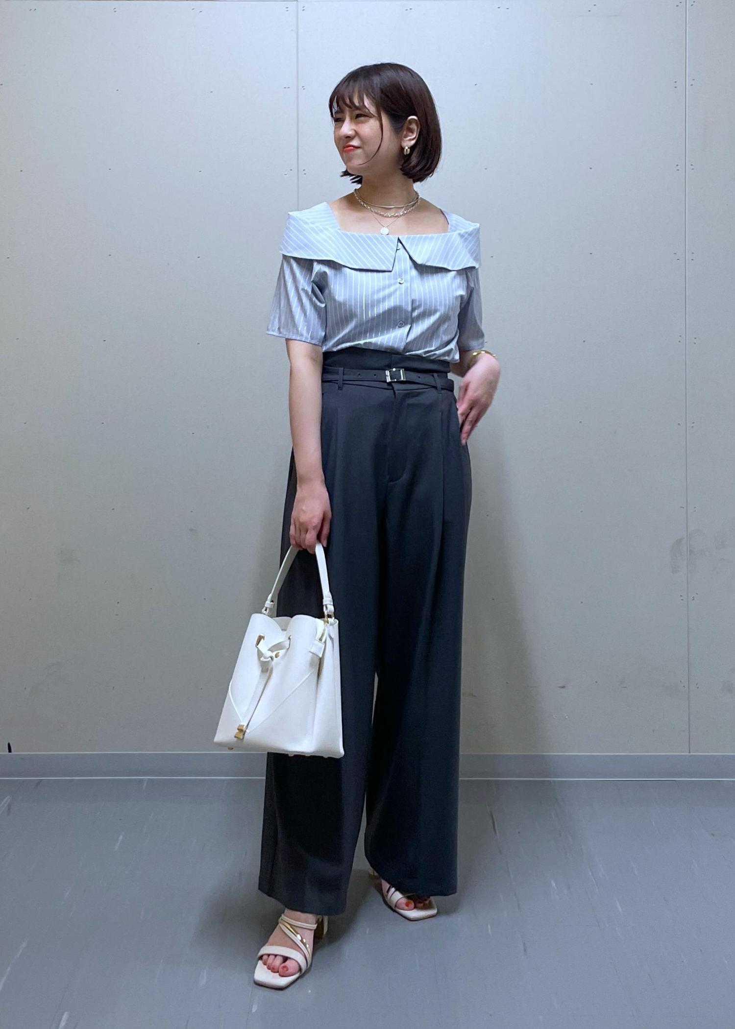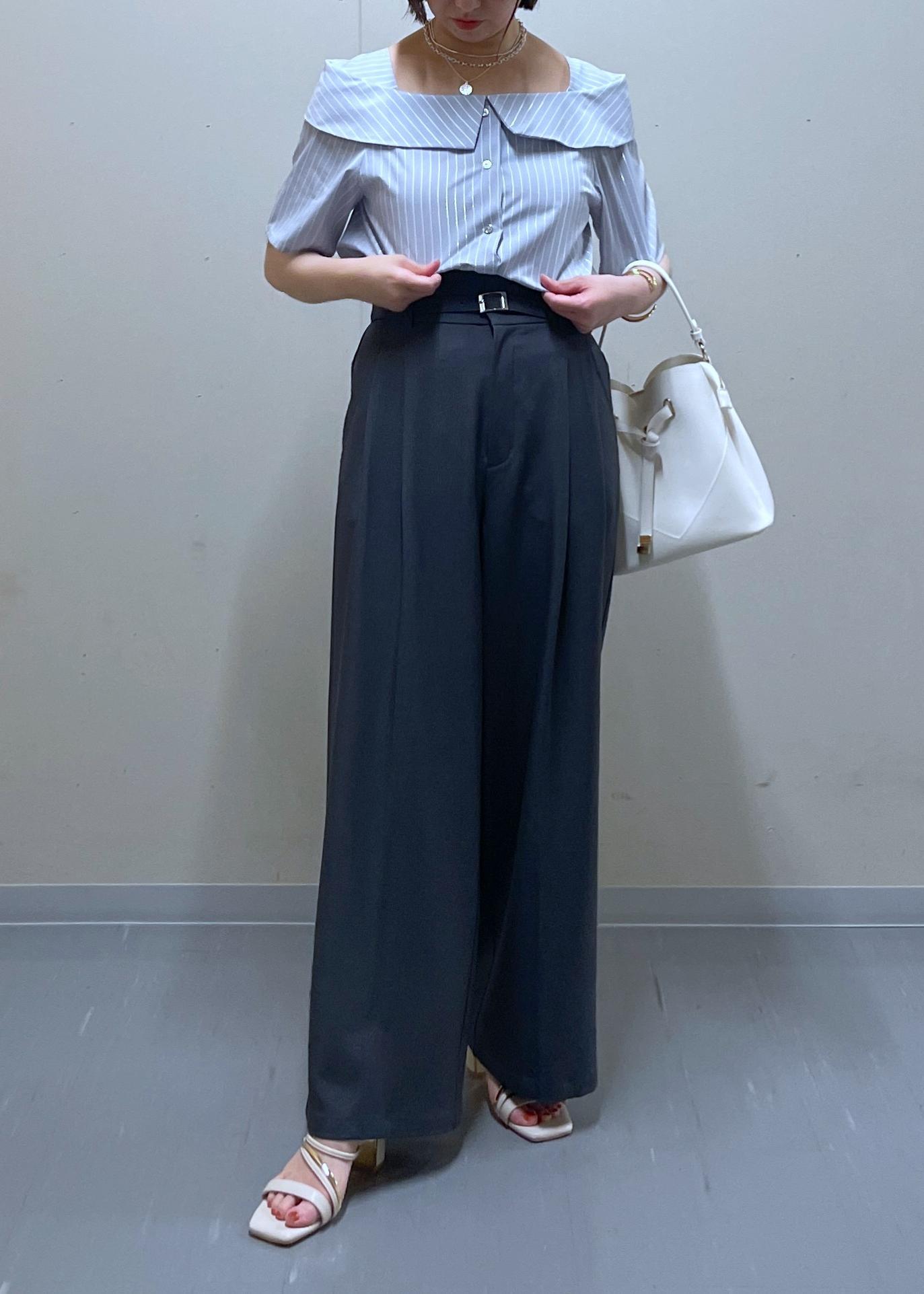 VIS【新色追加】【防シワ/接触冷感】ベルトディテールタックワイドスラックスパンツチャコール / S¥6,589レビューボトムはいつもSサイズがちょうど良く、こちらもSサイズを着用。