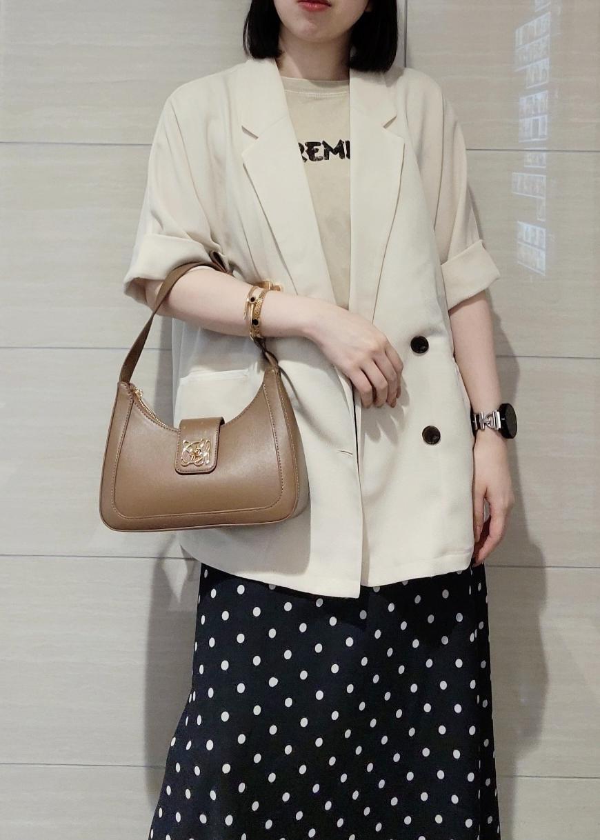 VIS【180℃美人見え】ハンドルリボンワンショルダーバッグブラウン系 / F¥5,929レビューファスナータイプなので中身が見えず、ひねり金具なので開閉もしやすいです。長財布が収まるほどのサイズ感で、大きすぎず軽量で使いやすいです。