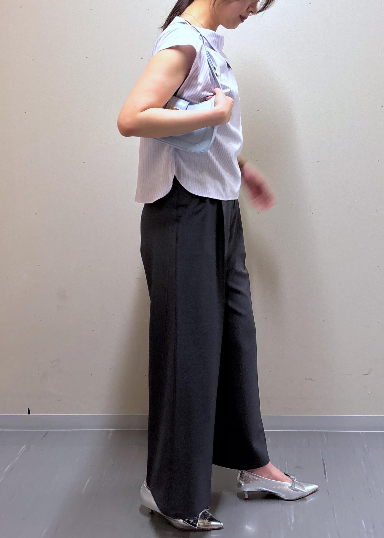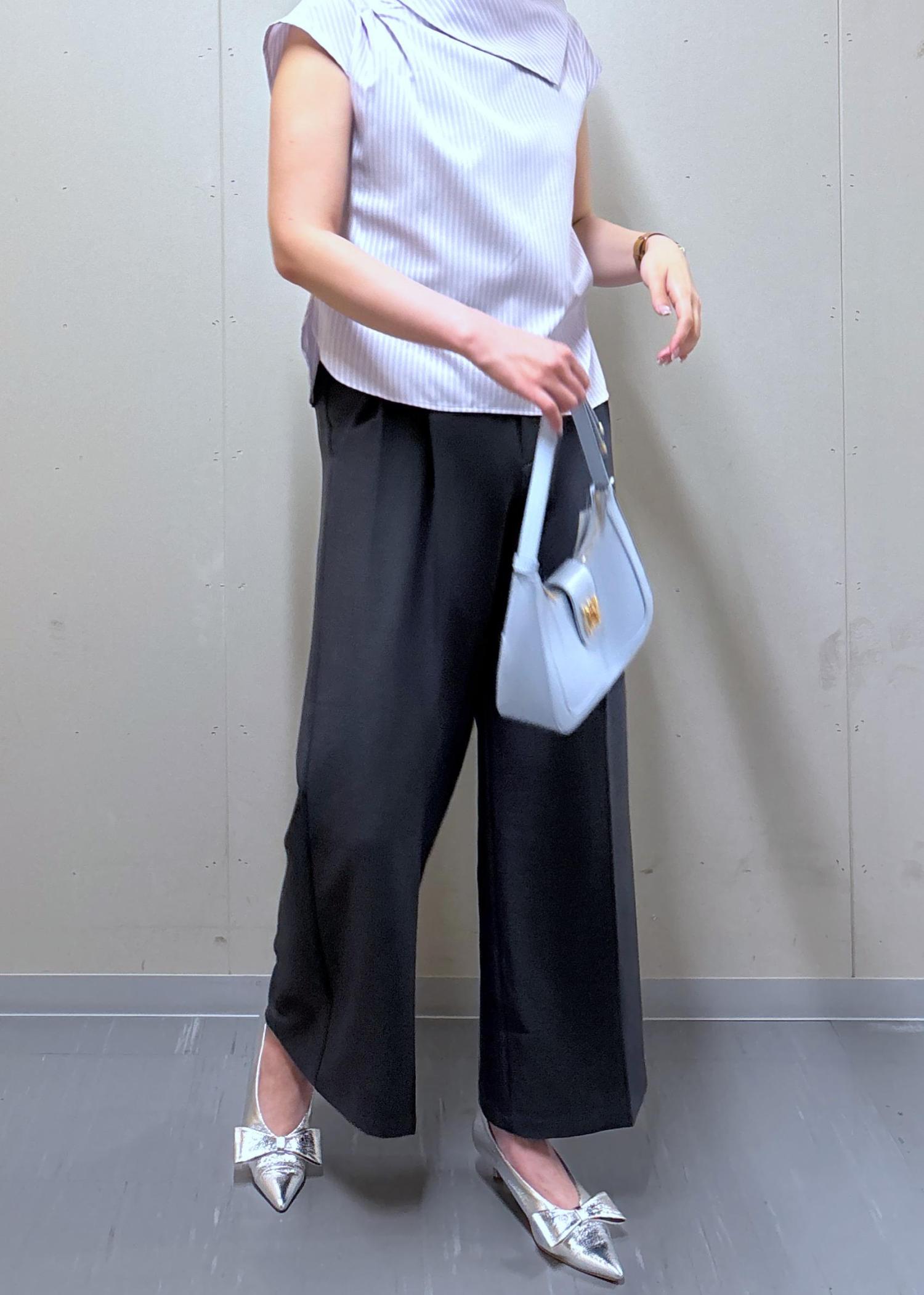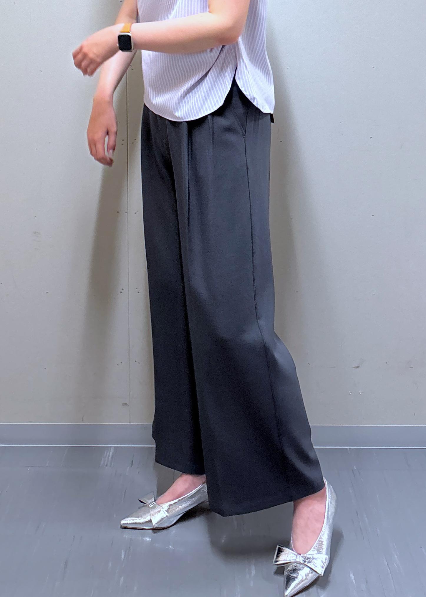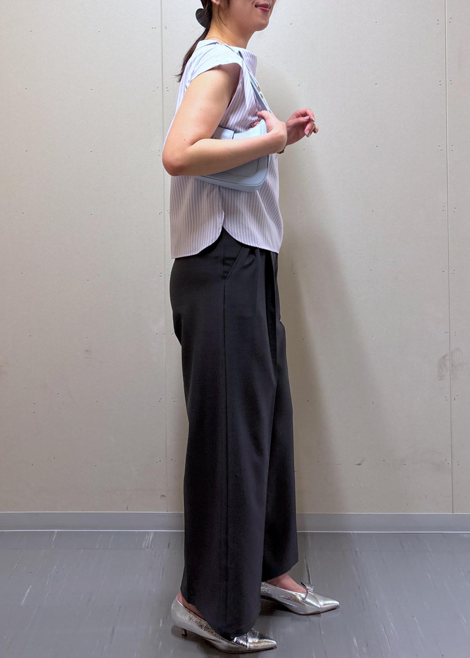 VIS【新色追加】【防シワ/接触冷感】ベルトディテールタックワイドスラックスパンツチャコール / M¥6,589レビュー身長173センチで、くるぶし少し見えるくらいです。普段Lサイズを履きますが、Mサイズでもゆとりありました。股下はかなりハイウエストなので、着丈短いトップスと相性良いです。