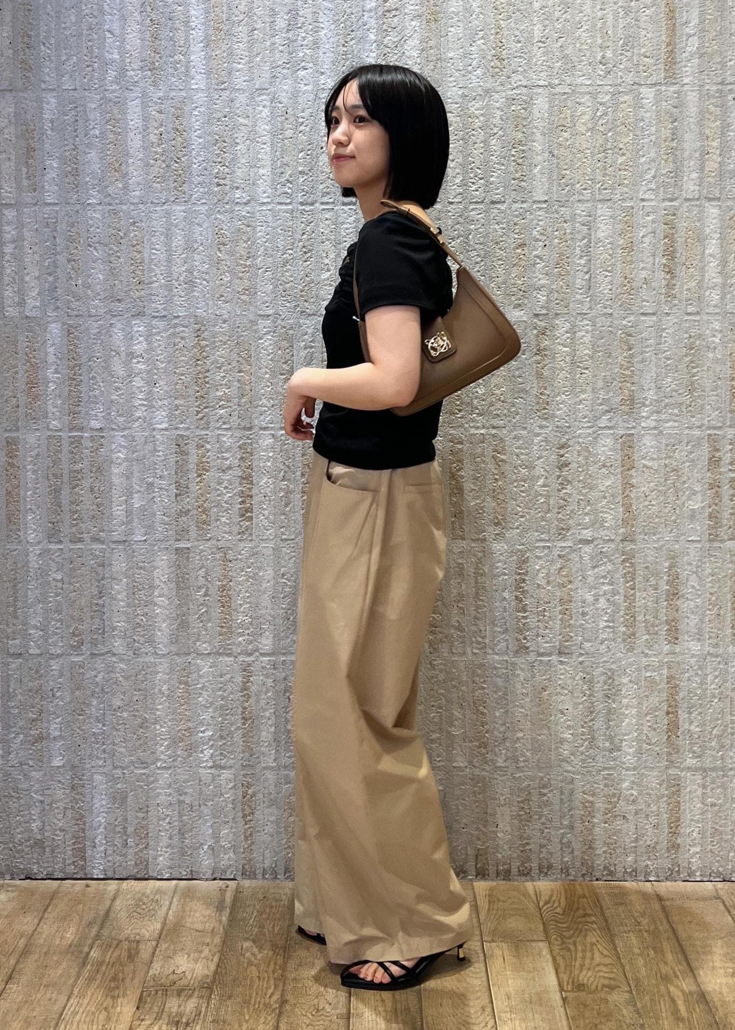 柔らかい生地感で見た目よりも通気性がよく、夏にピッタリなアイテム。二の腕は少し出ますが、全体的に着痩せするの形なので今回は黒をリアルバイしました◎