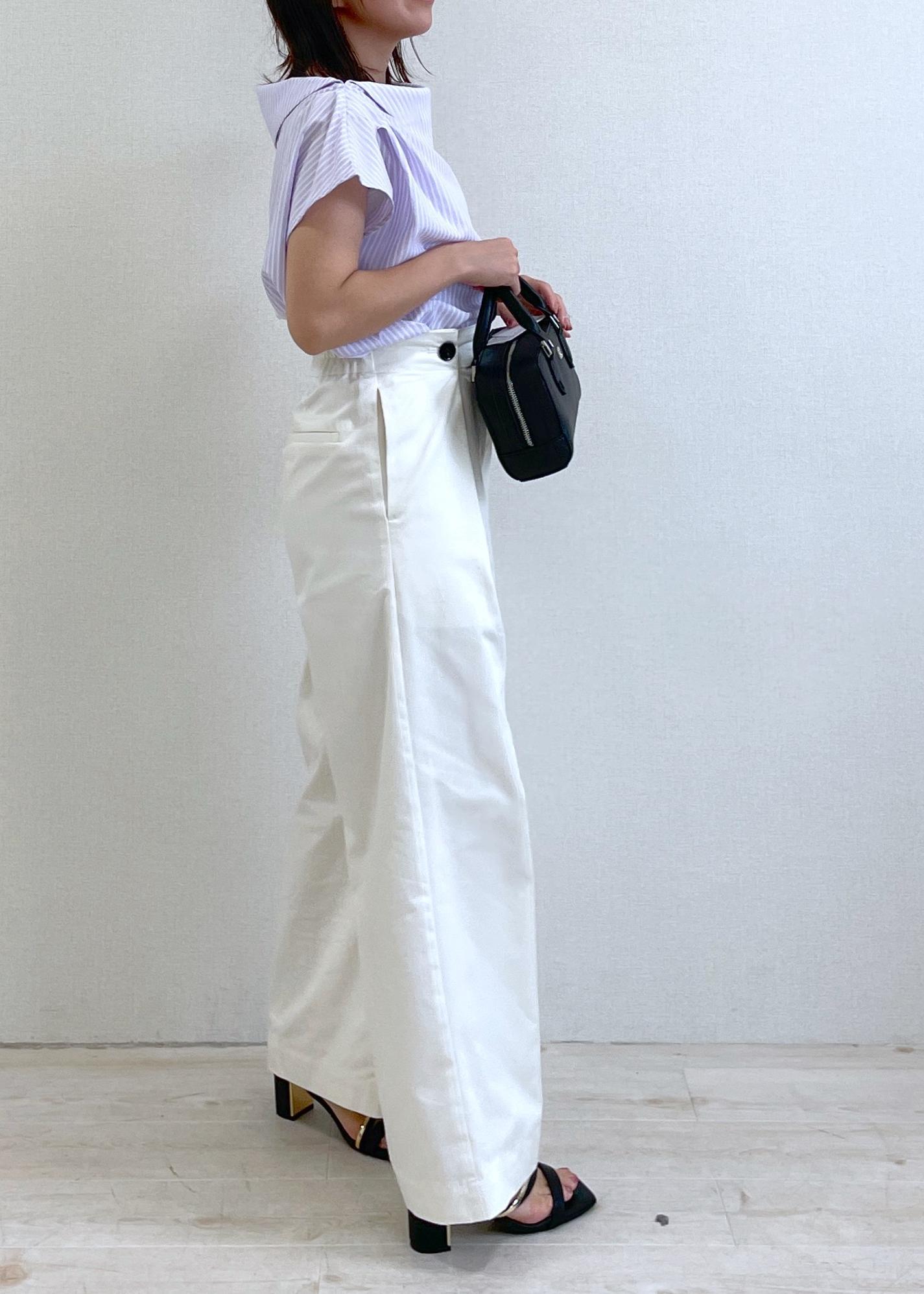 長すぎない丈感で、ヒールを履くと下につかず低身長の方でも着やすいです!