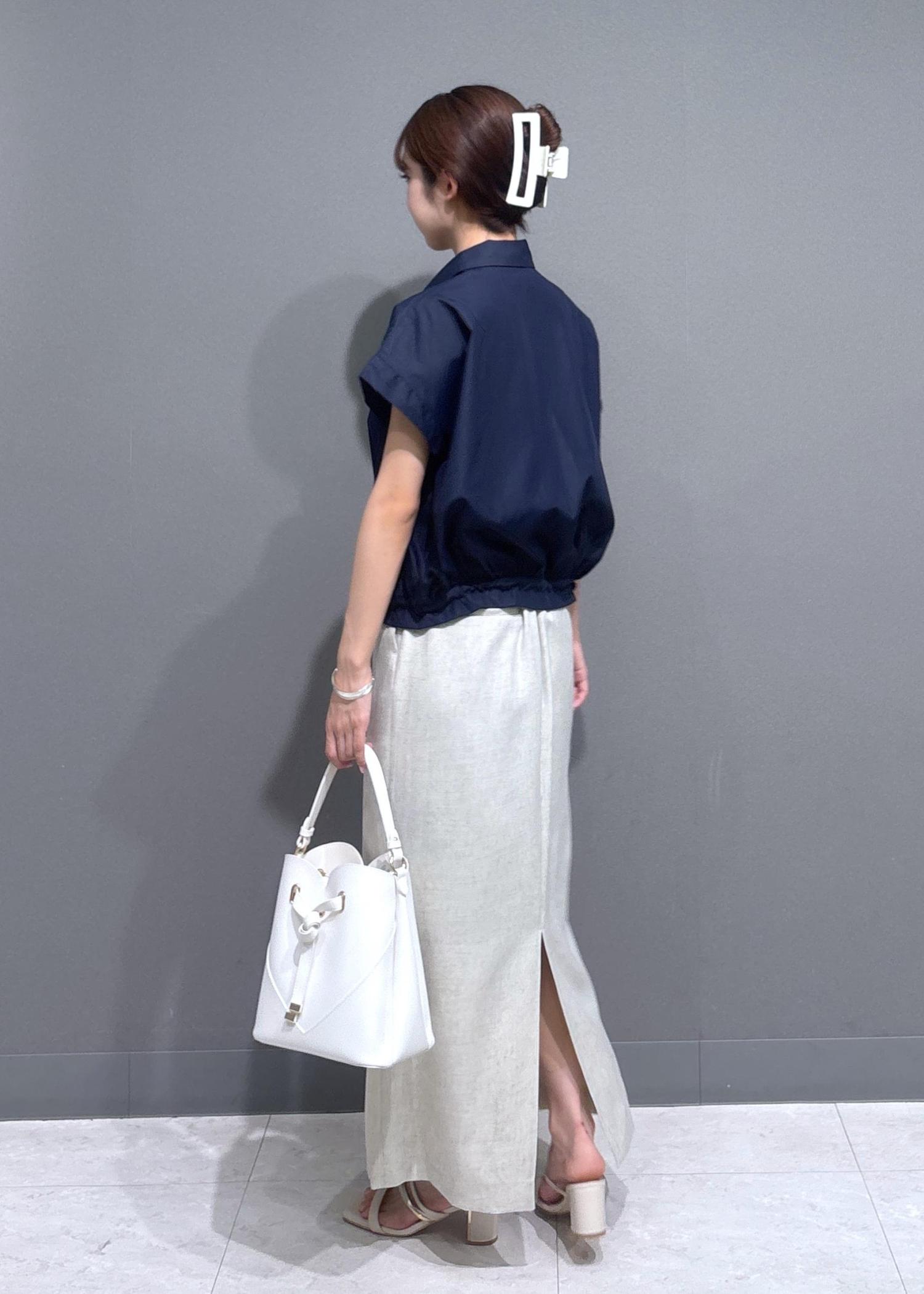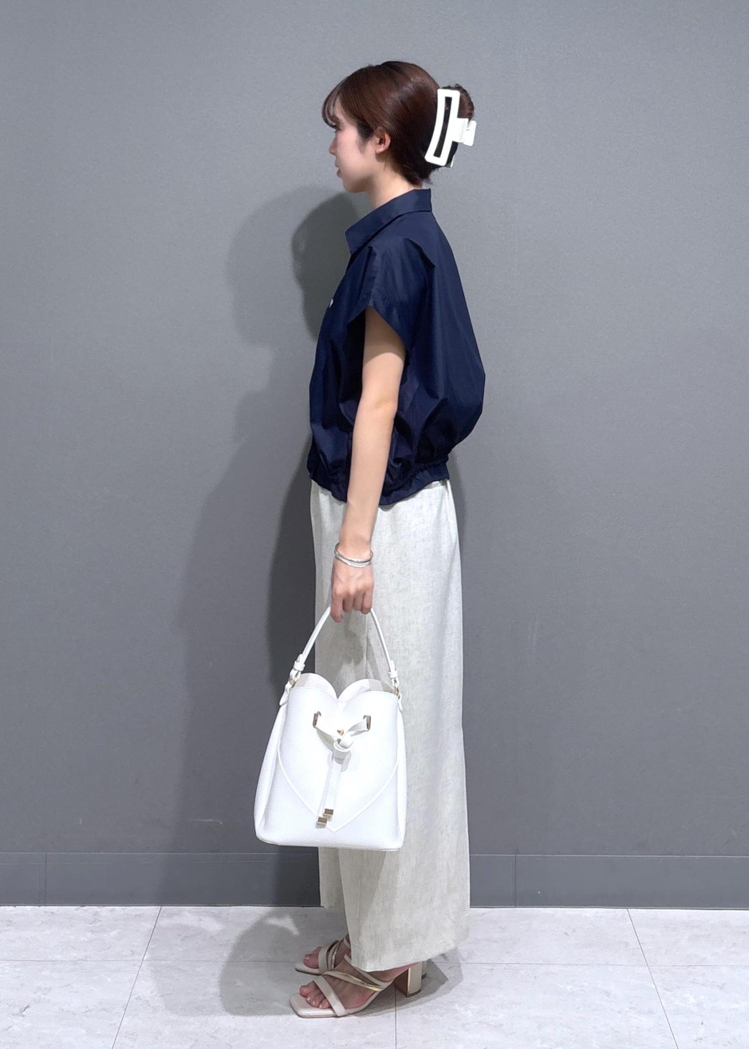 ホワイト小物(バッグ&サンダル)で全体を軽やかにまとめて、涼しげな雰囲気に仕上げてみました!