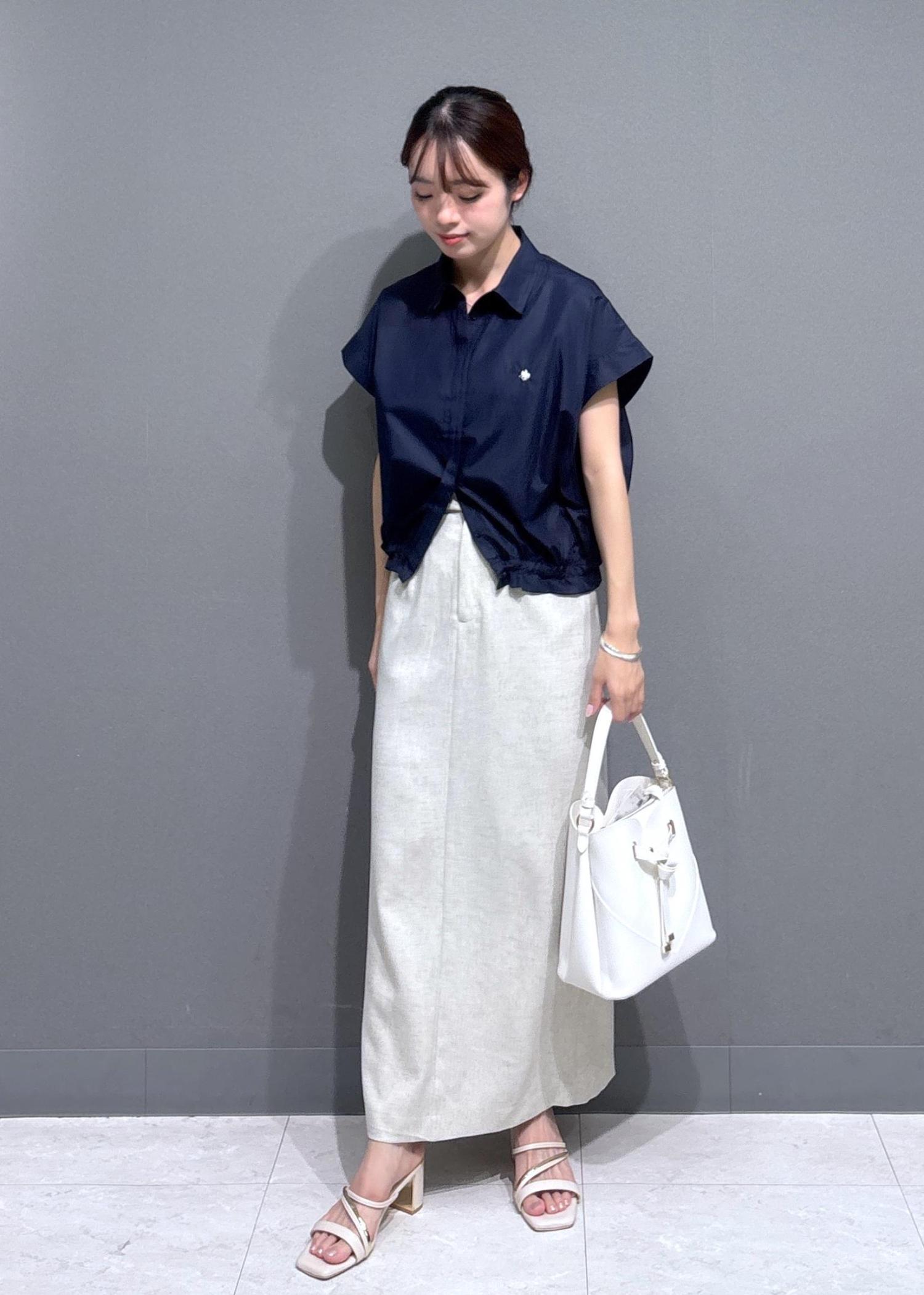 ネイビーシャツ×オフホワイトのロングスカートで、爽やかさと上品さをMIXした夏の大人スタイル♪