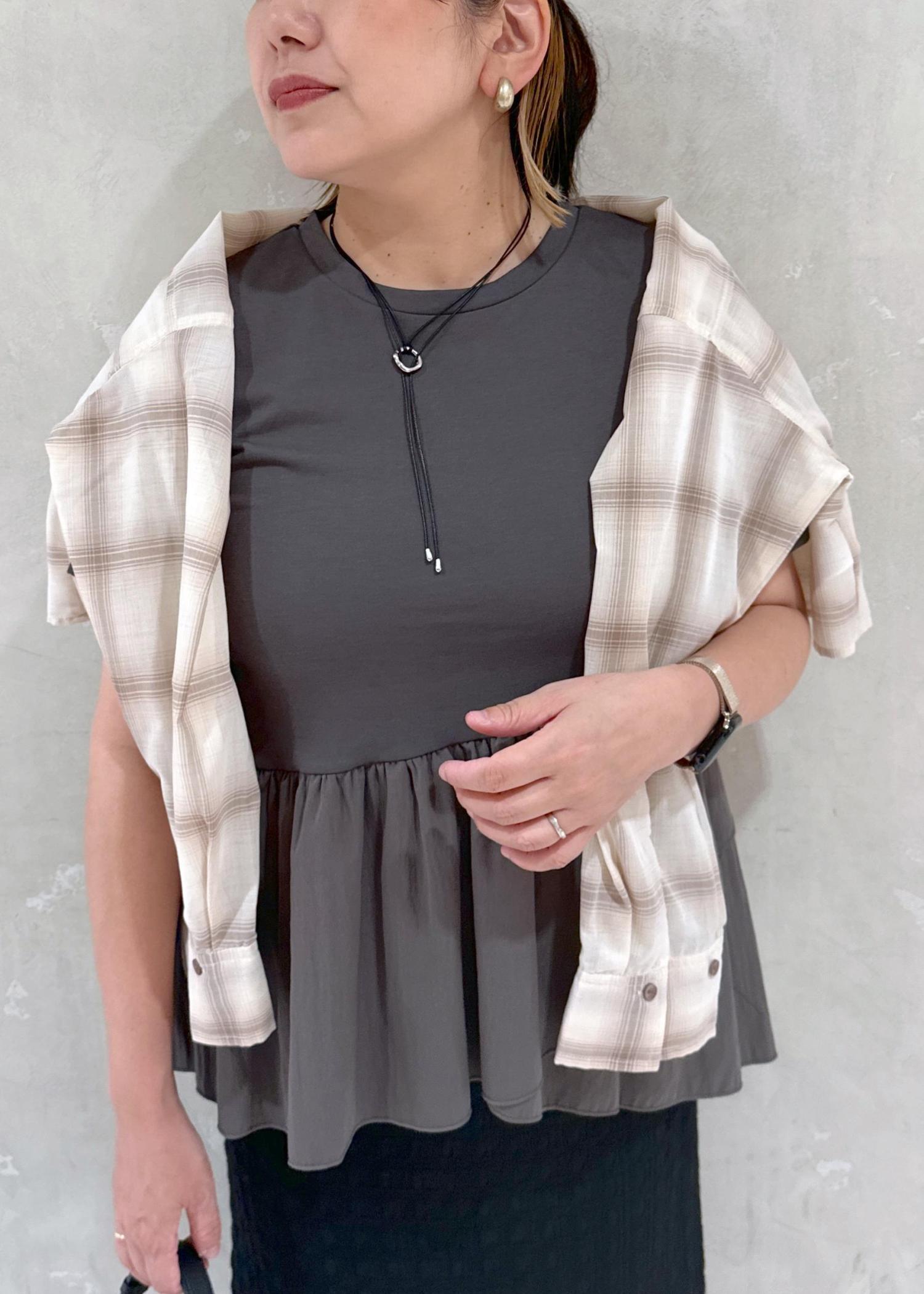 アウトレットVISペプラムドッキングプルオーバーチャコール / F¥2,963レビュー腰まわりのカバーができるカットソーです!
