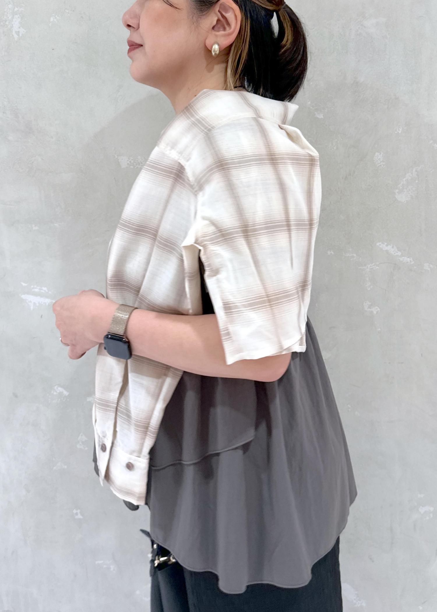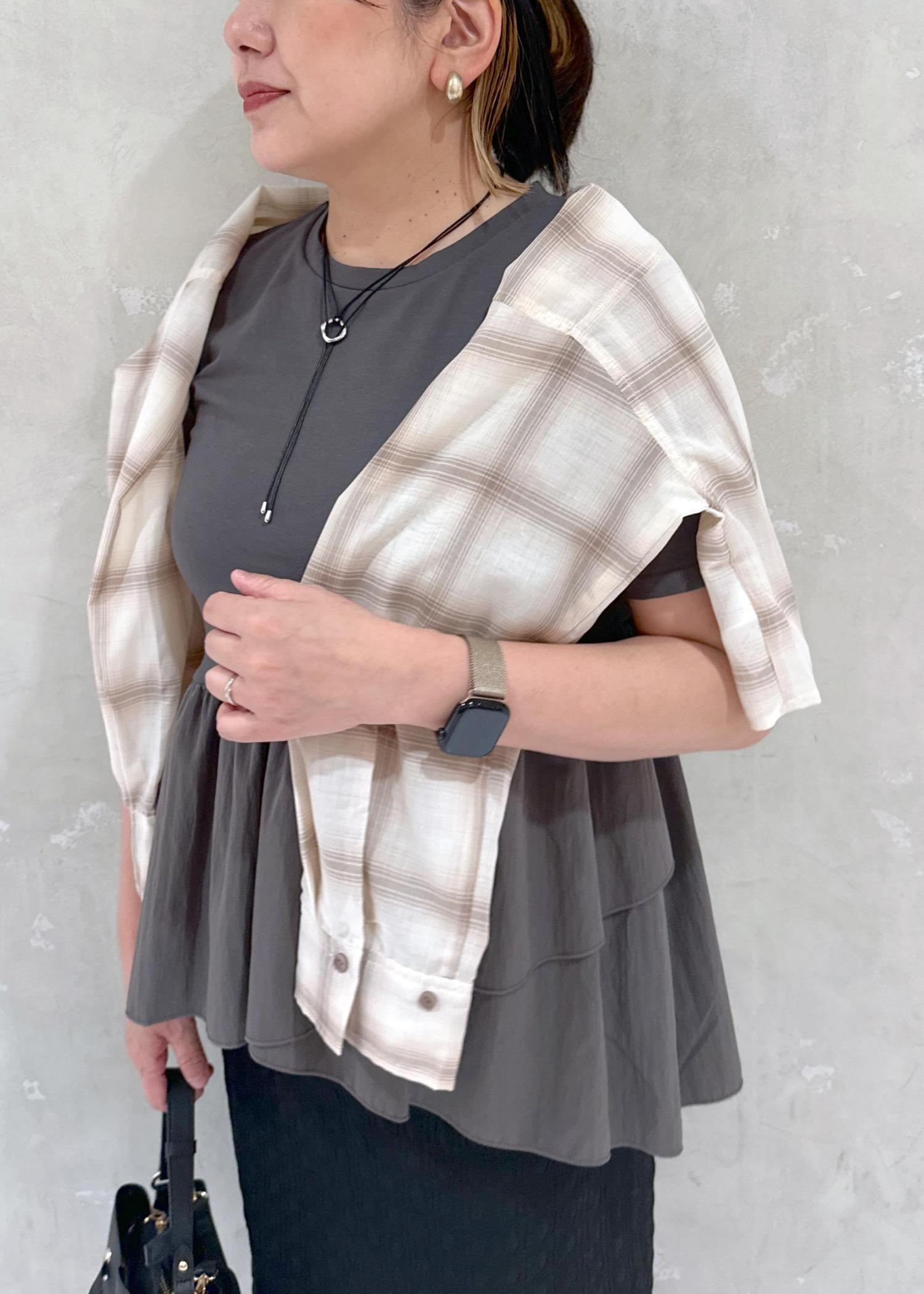 アウトレットVISシアー&チェックショート丈シャツベージュ / F¥3,293レビュー腰まわりのカバーができるカットソーです!