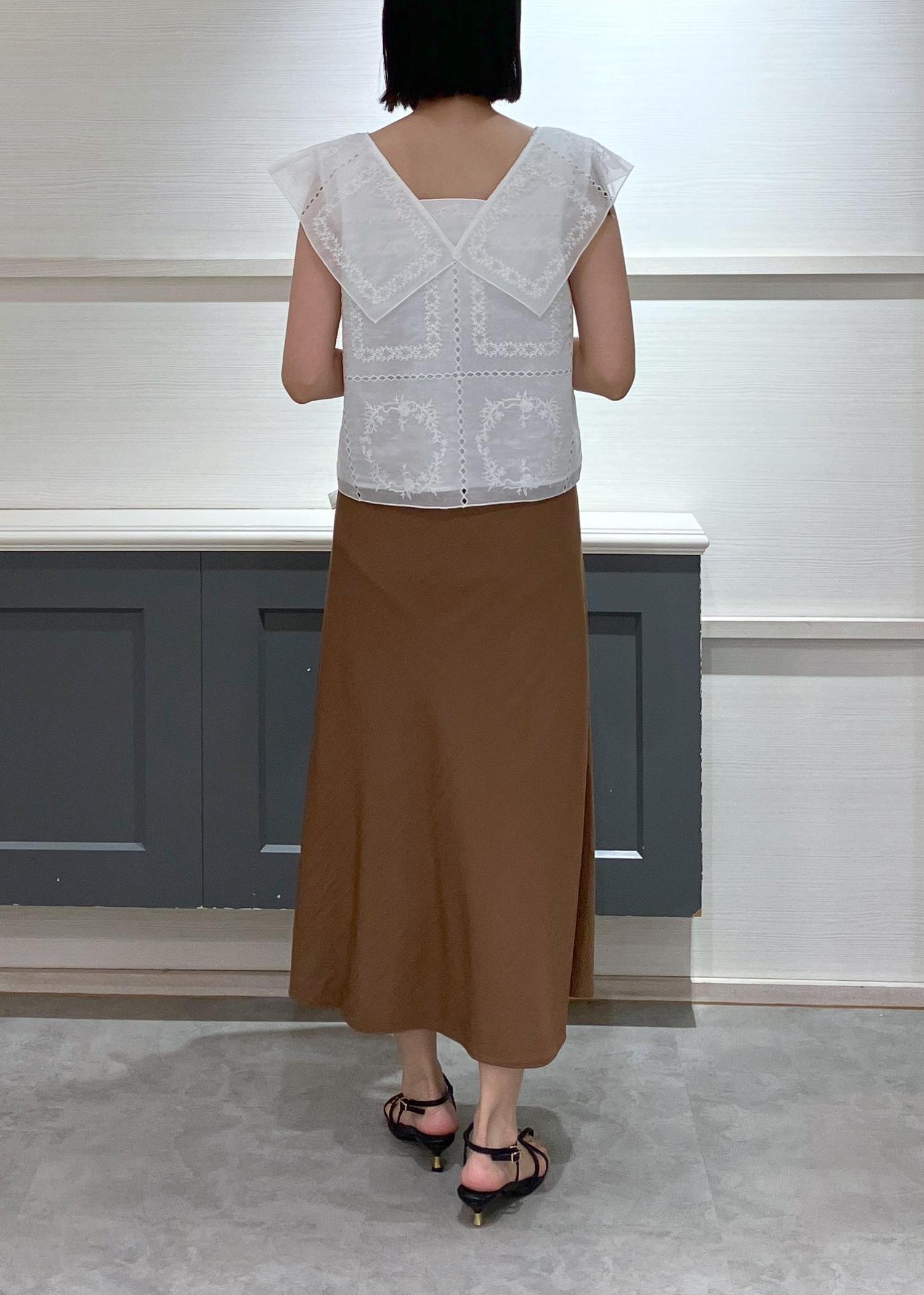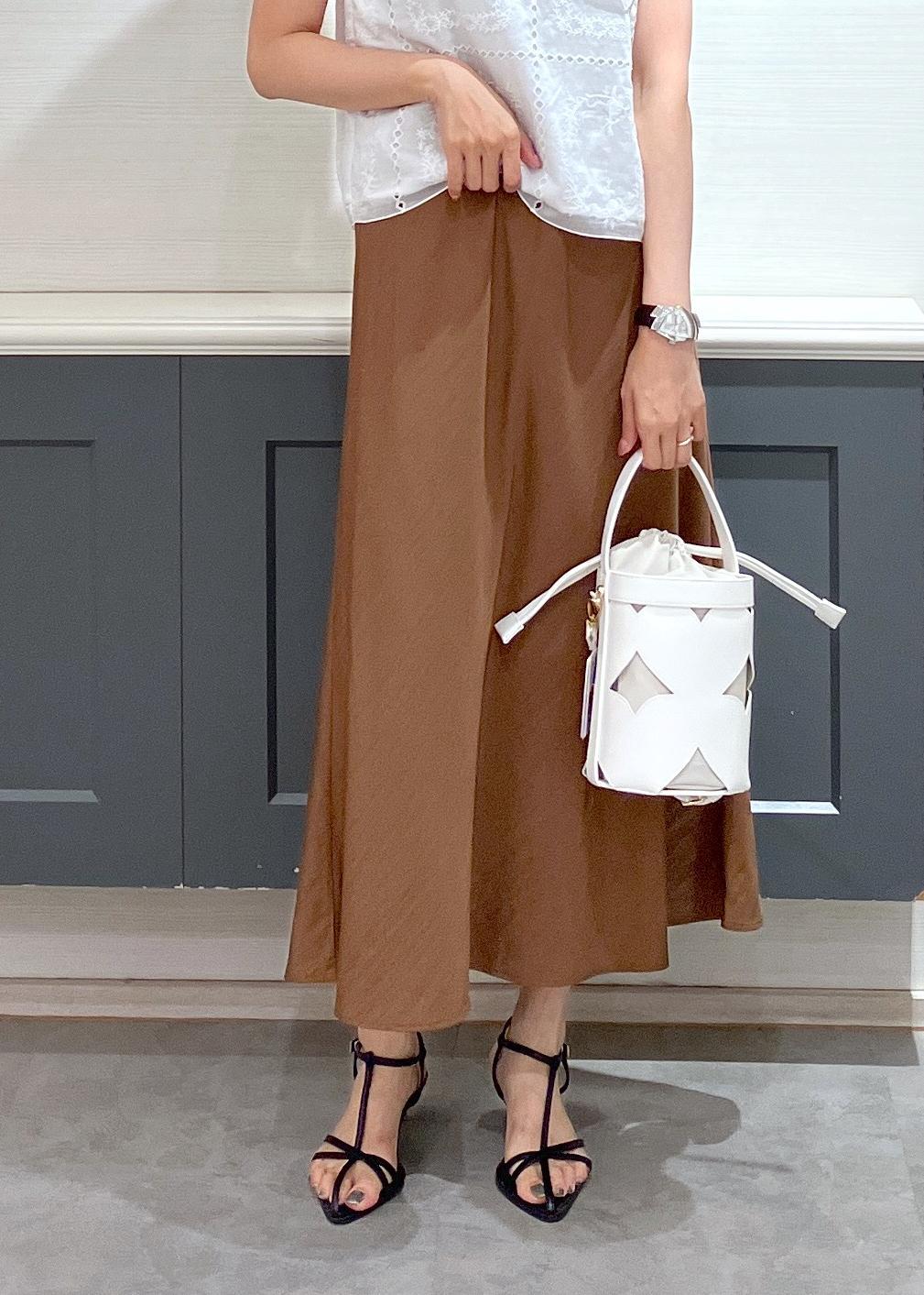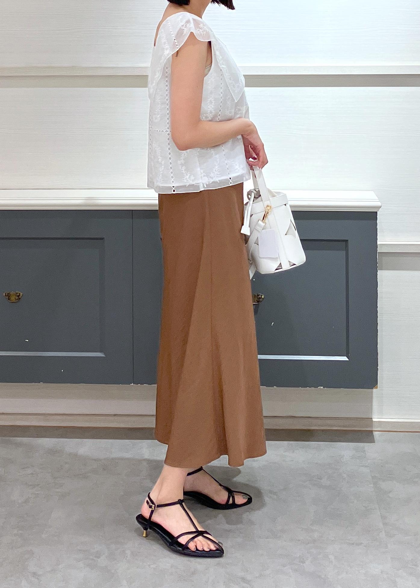 キャミワンピースにブラウスをレイヤードし、ワンピースをスカート風にスタイリングしました♡