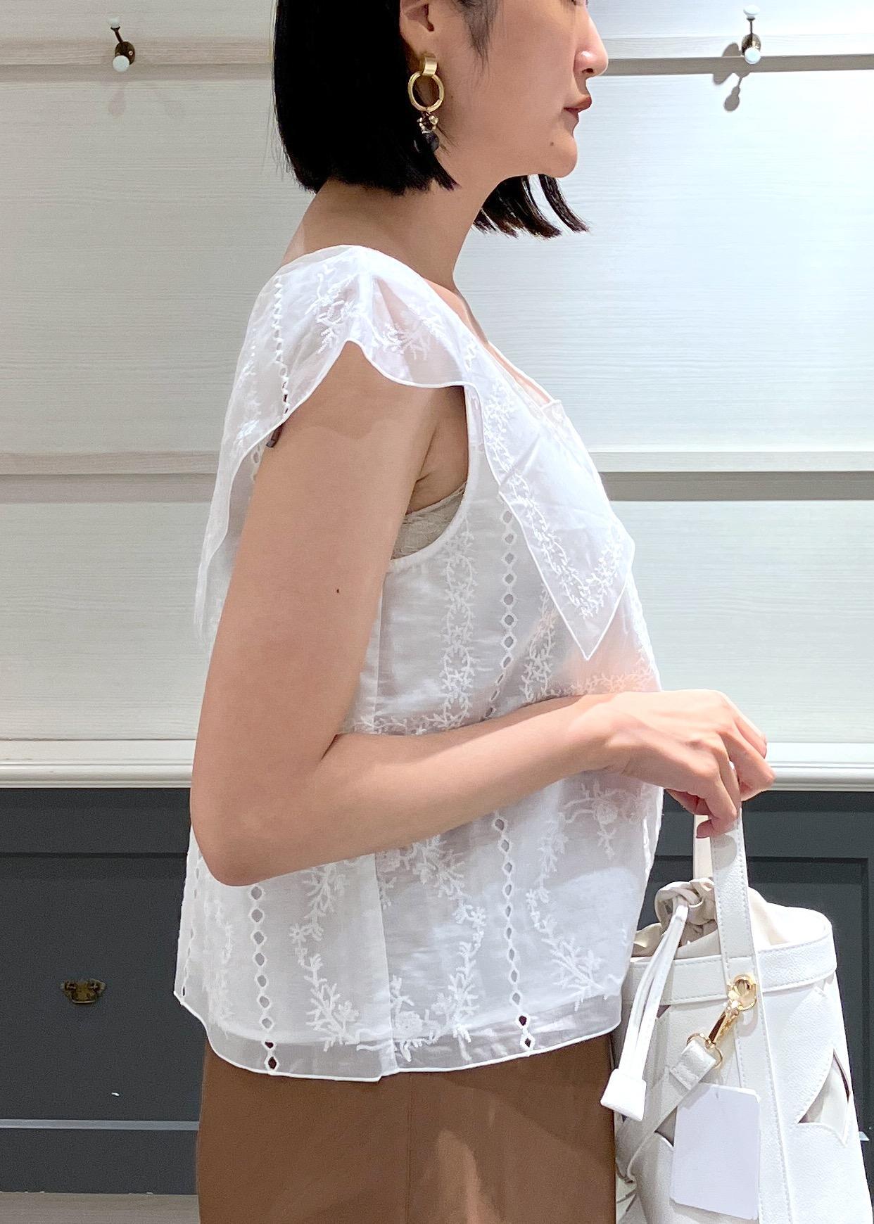 爽やかなレースとブラウンのキャミワンピの相性は良く、思わずお出かけしたくなるコーディネートです♩