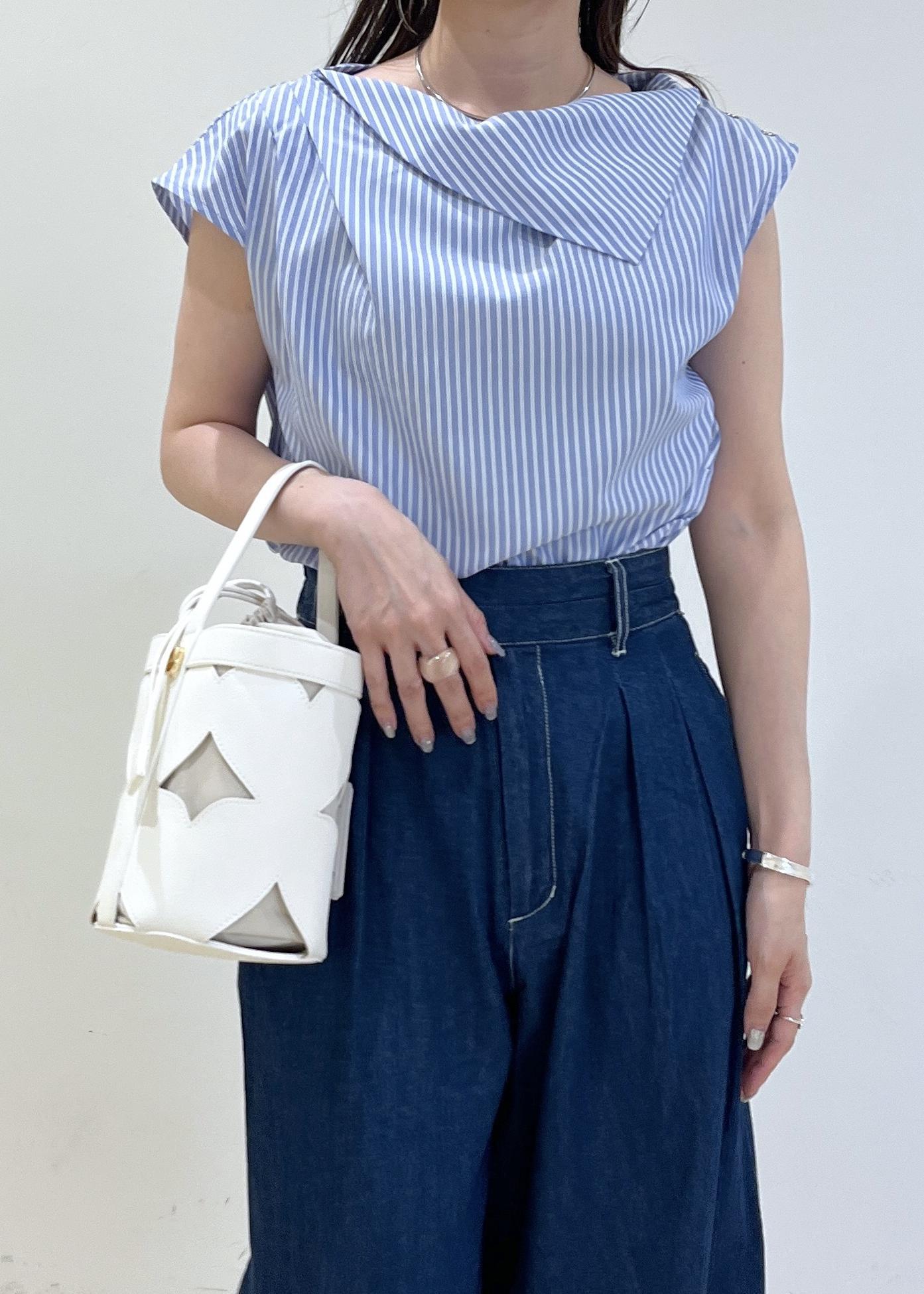 アウトレットVISアシメオフショルブラウスブルー系 / F¥3,457レビュー158㎝でFサイズ着用。