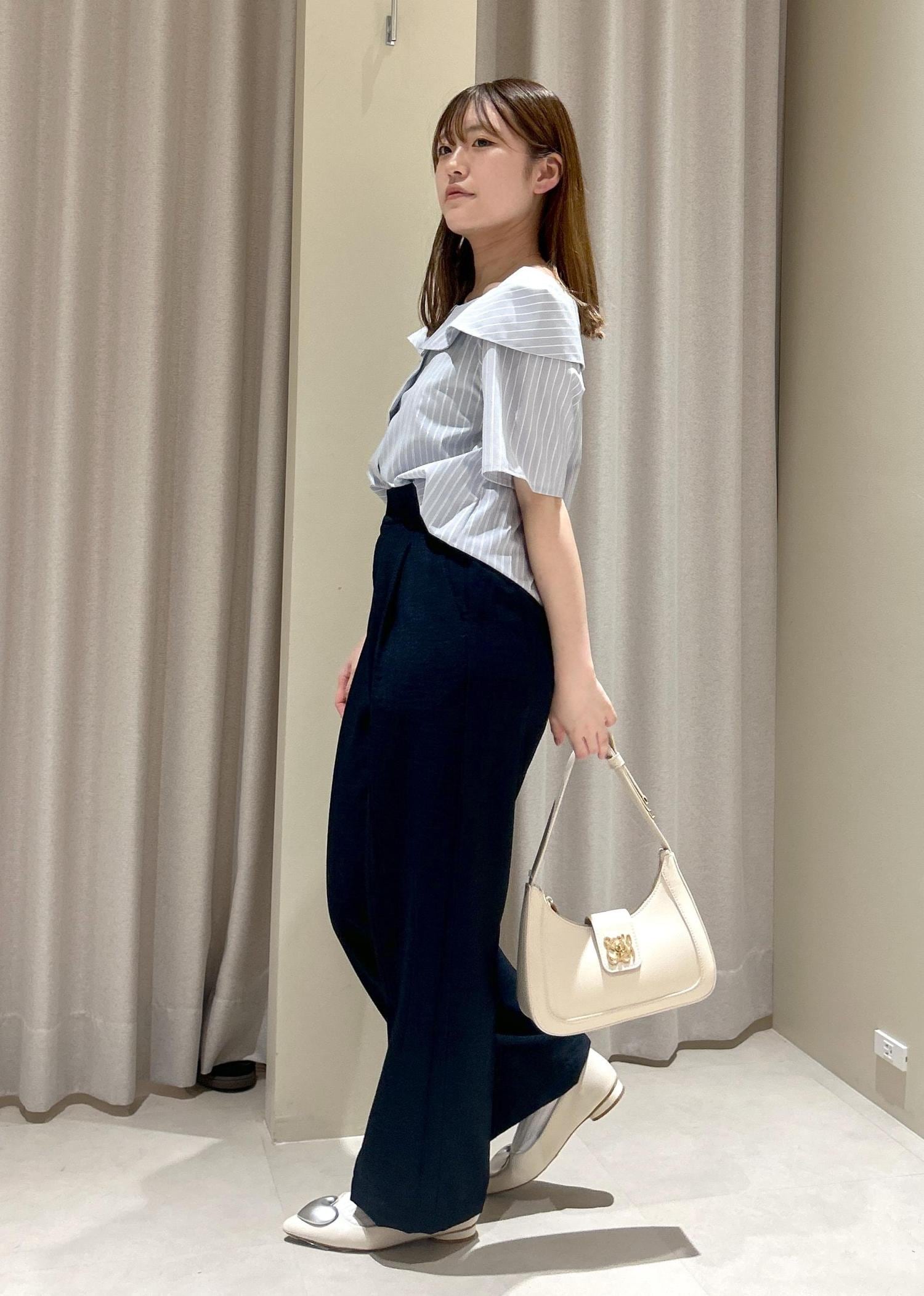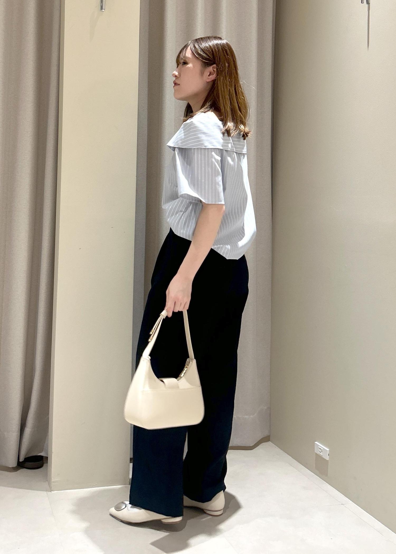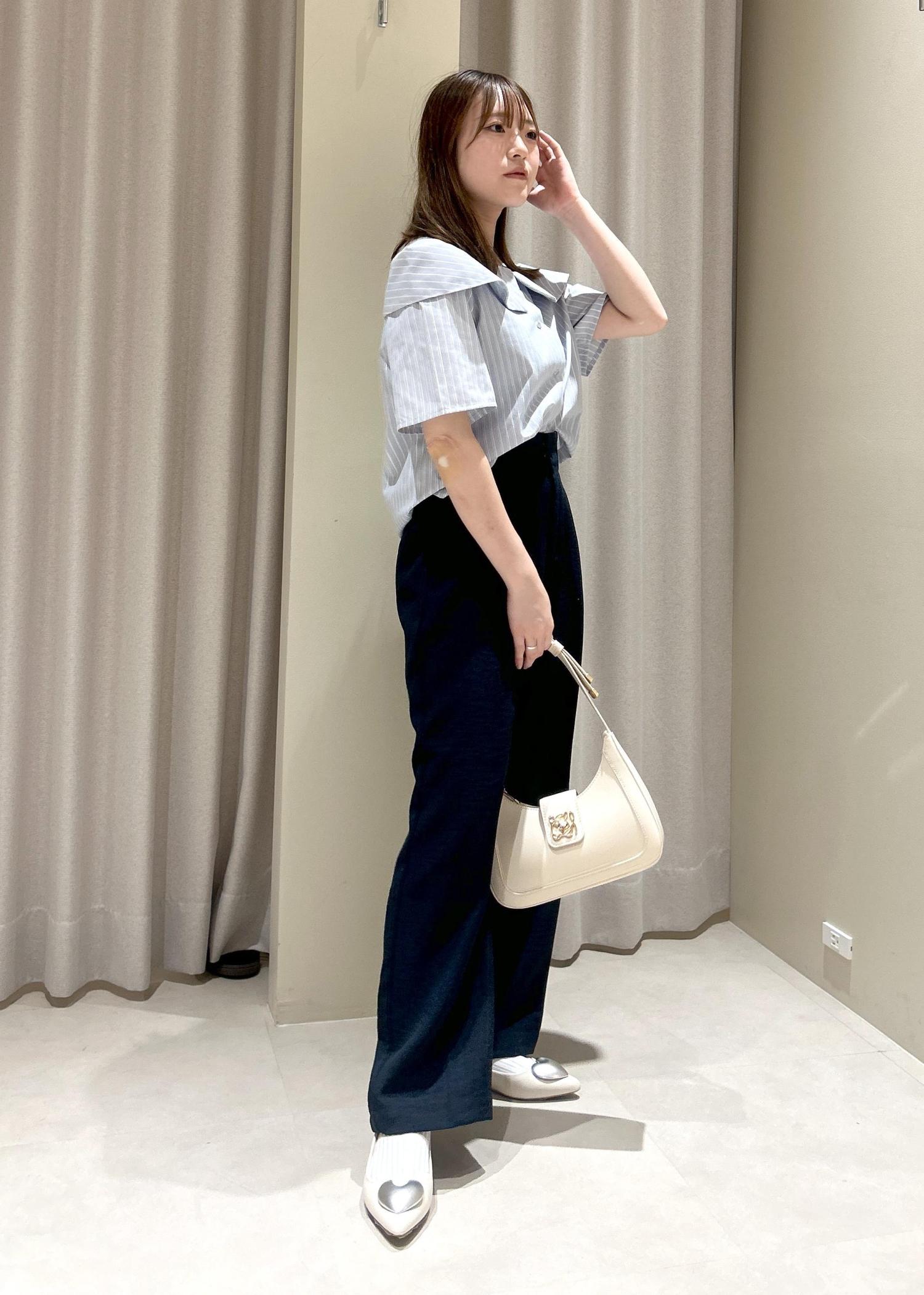 おとなっぽい感じで着たかったのでネイビーのパンツを合わせて爽やかにしました!