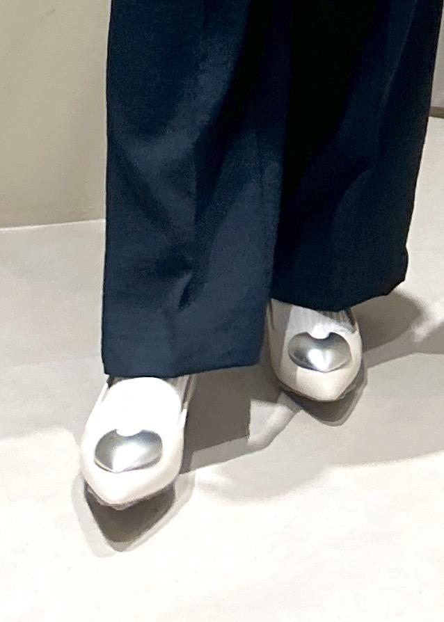 スモークのかかったメタルハートの装飾が足元から可愛くしてくれます。ヒールも引くためでクッション性もあるので長時間歩いても疲れにくいです。