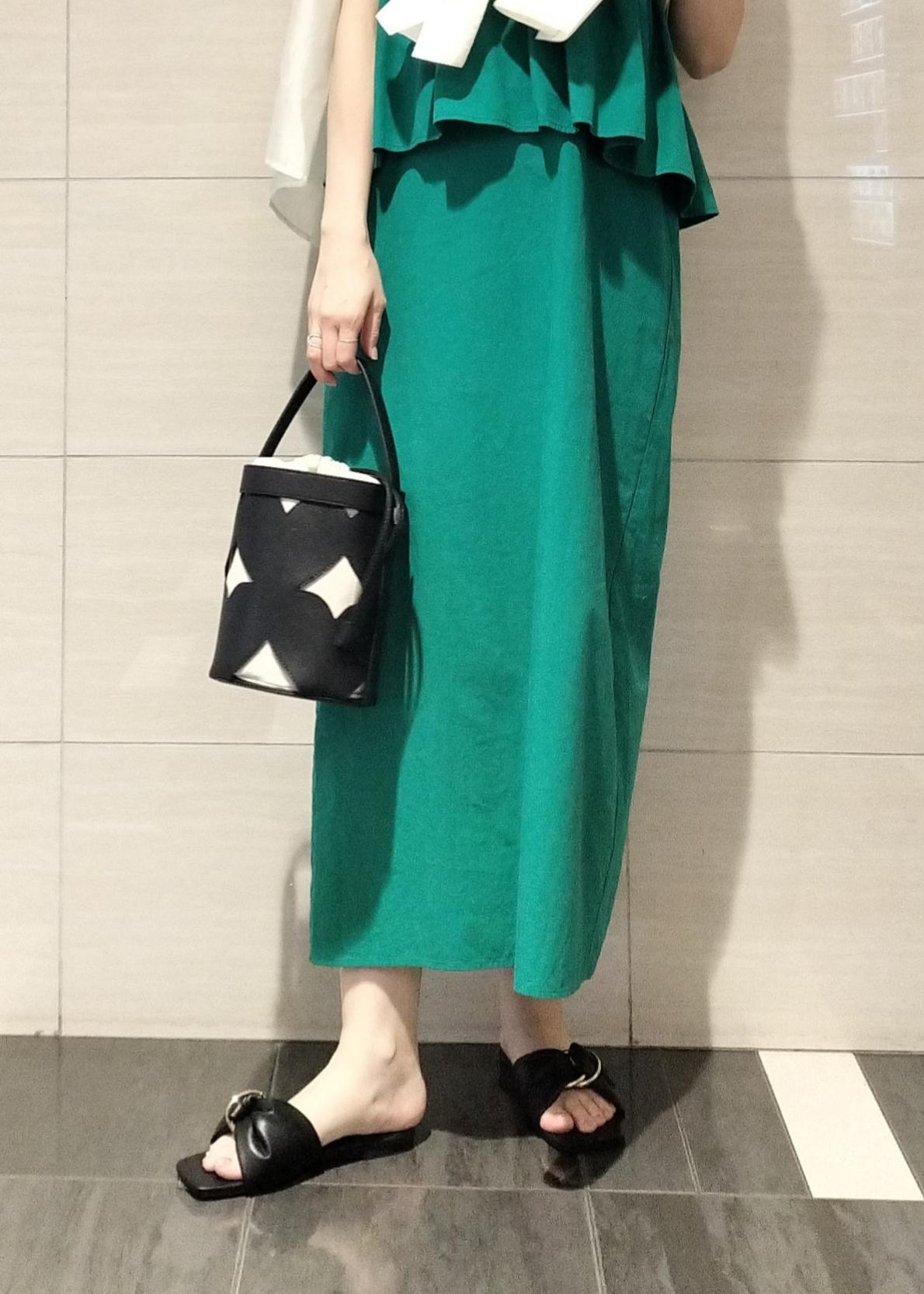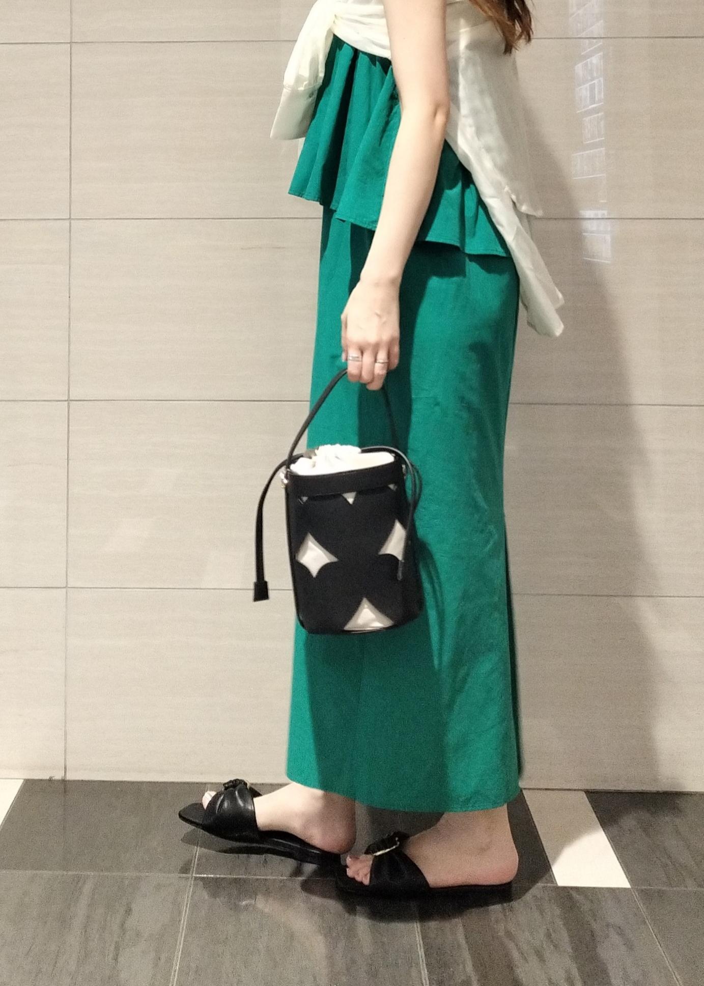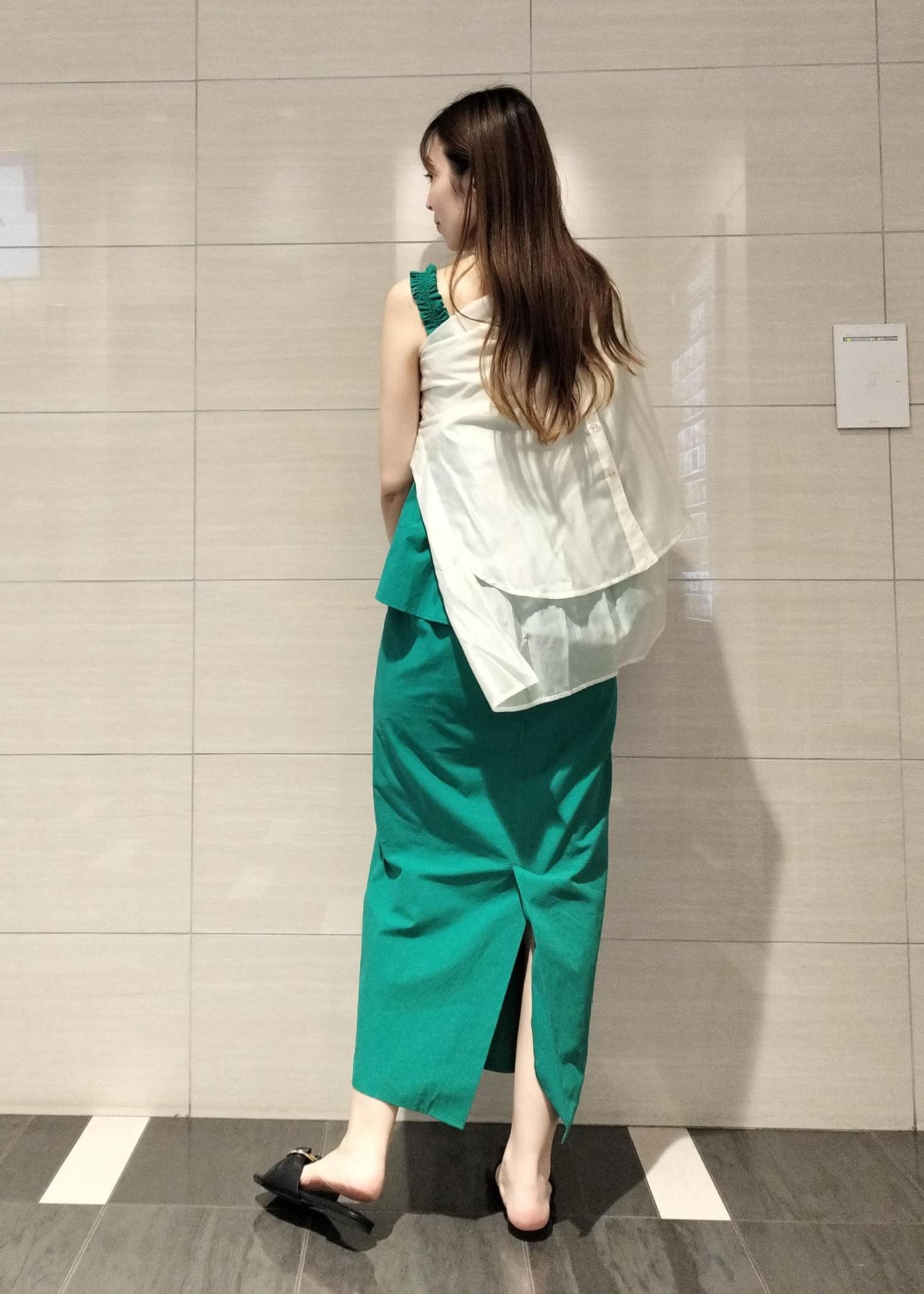 グリーンが映えるワンピースはレイヤード風になっていて涼しげな素材感が夏のリゾートスタイルにもマッチします♪