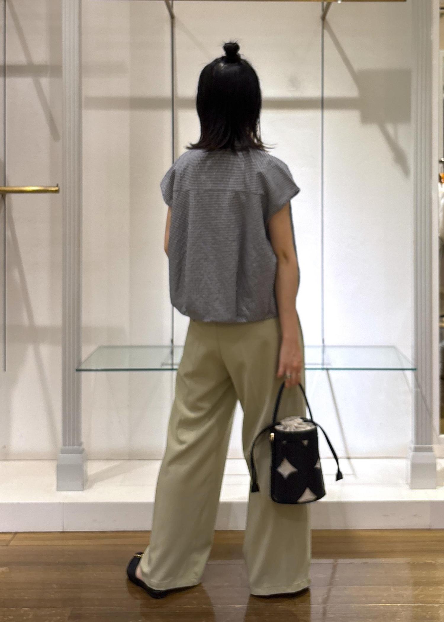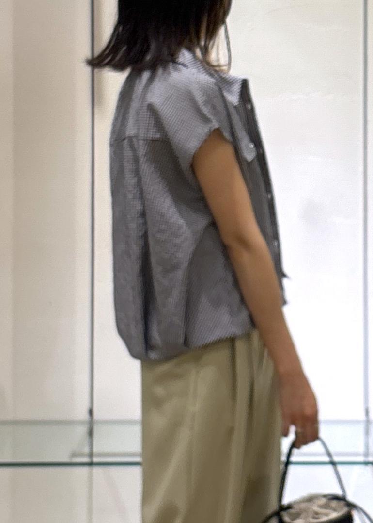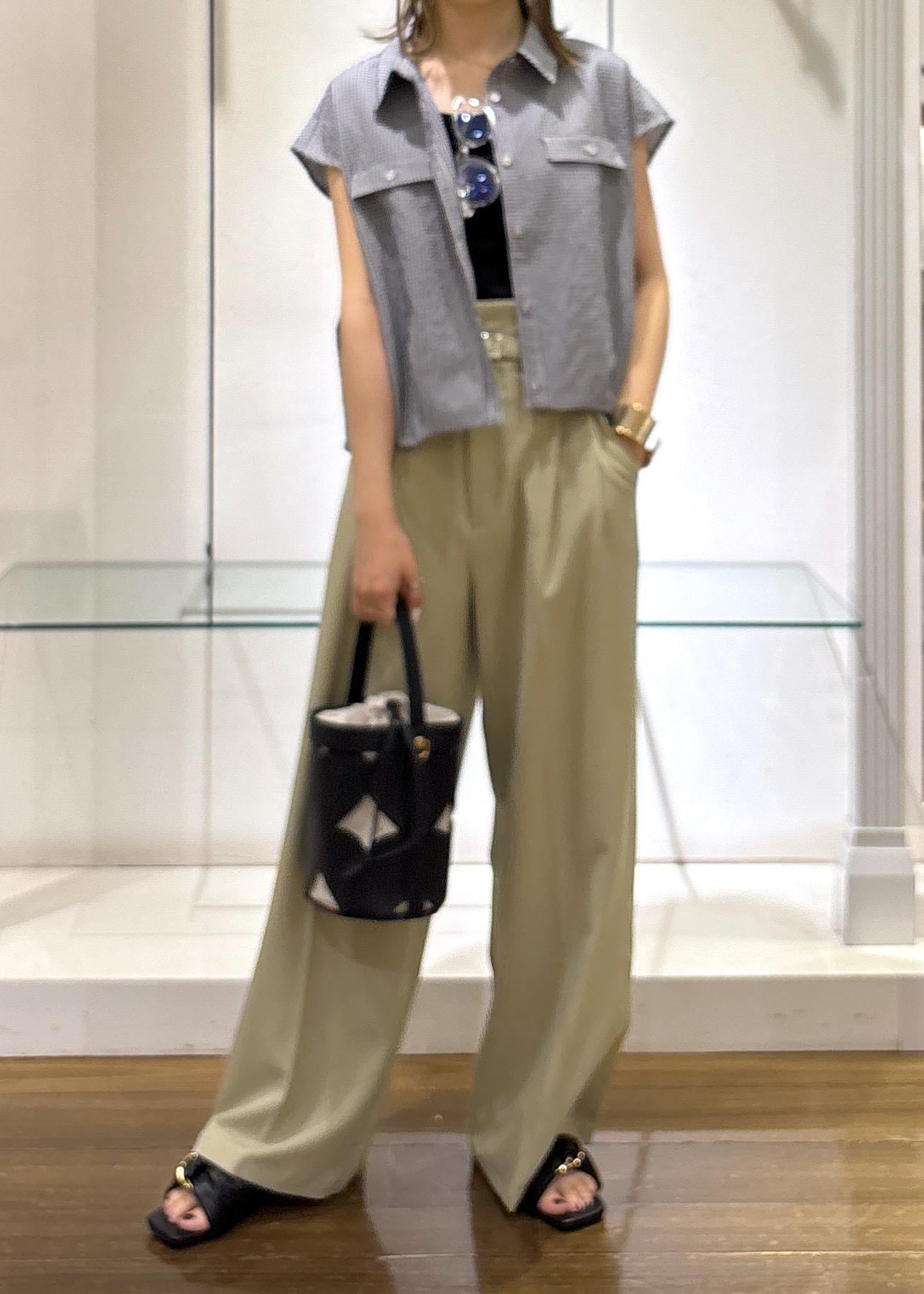 コンプパクトめなシャツは羽織で着て、ハイウエストボトムの良いところを活かしたスタイルアップコーデです!