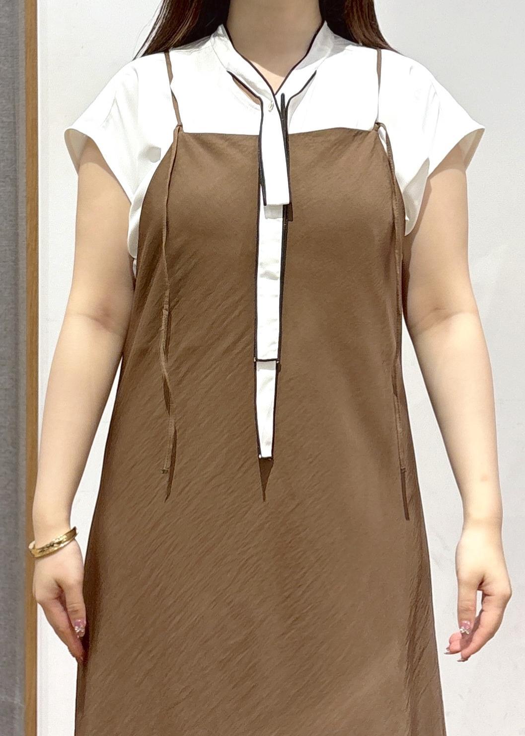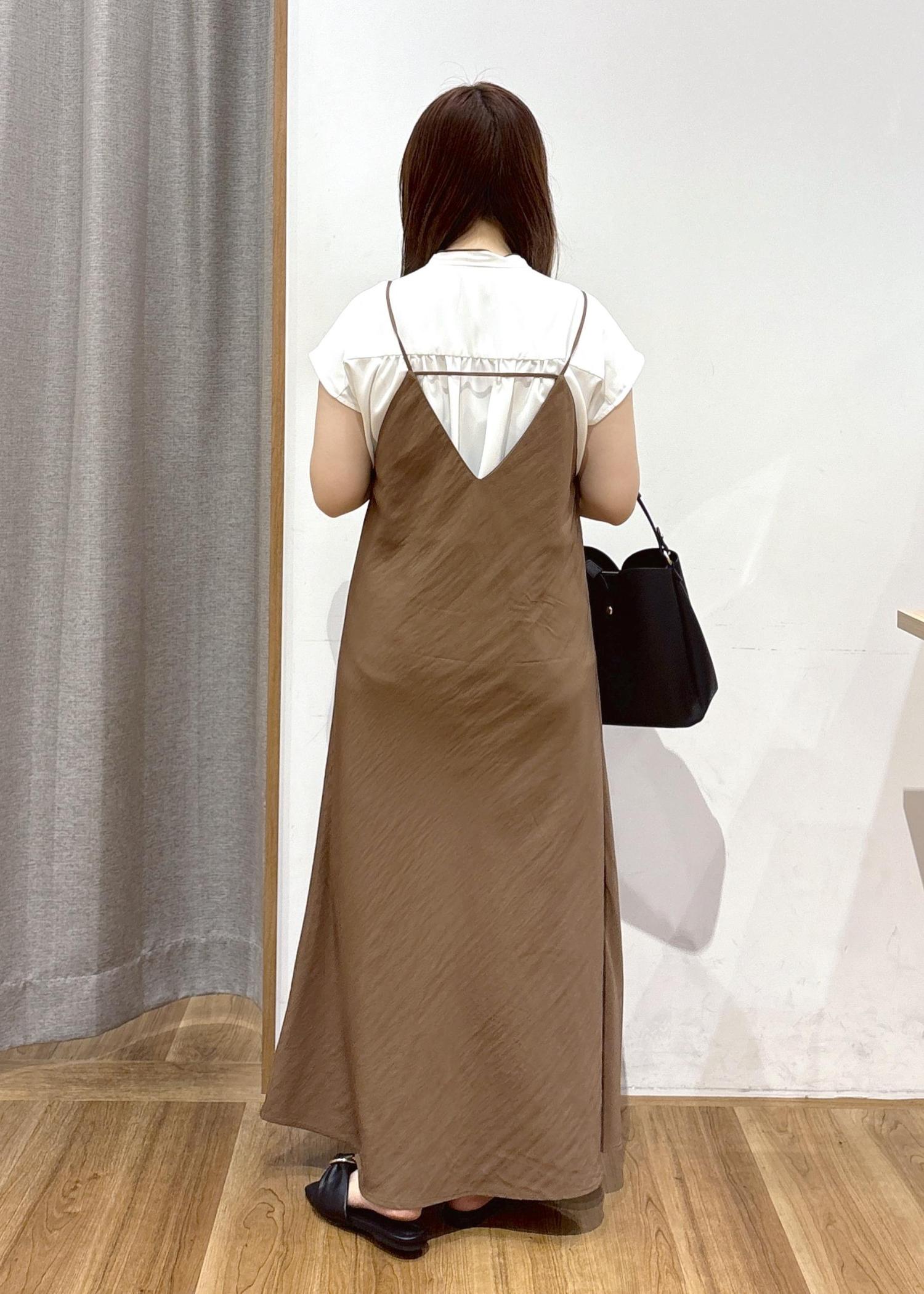 アウトレットVISバイヤス仕立てナローキャミワンピースブラウン / F¥3,076レビュー【着用感】