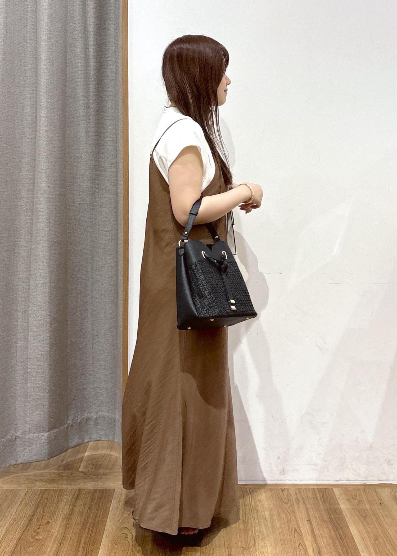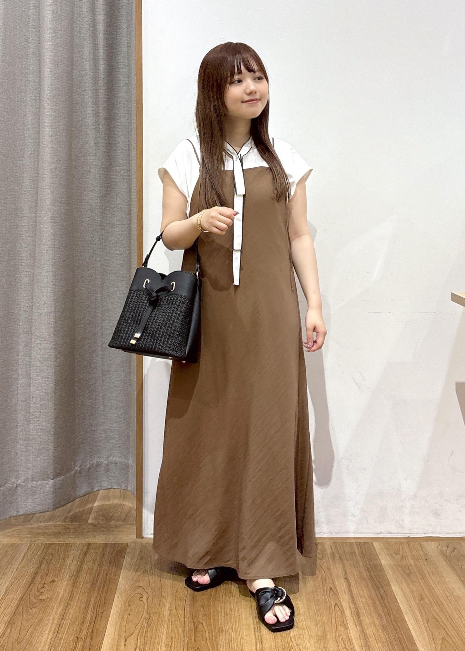 サイズ調整がきく扱いやすいワンピースをメインにしたコーディネートです。