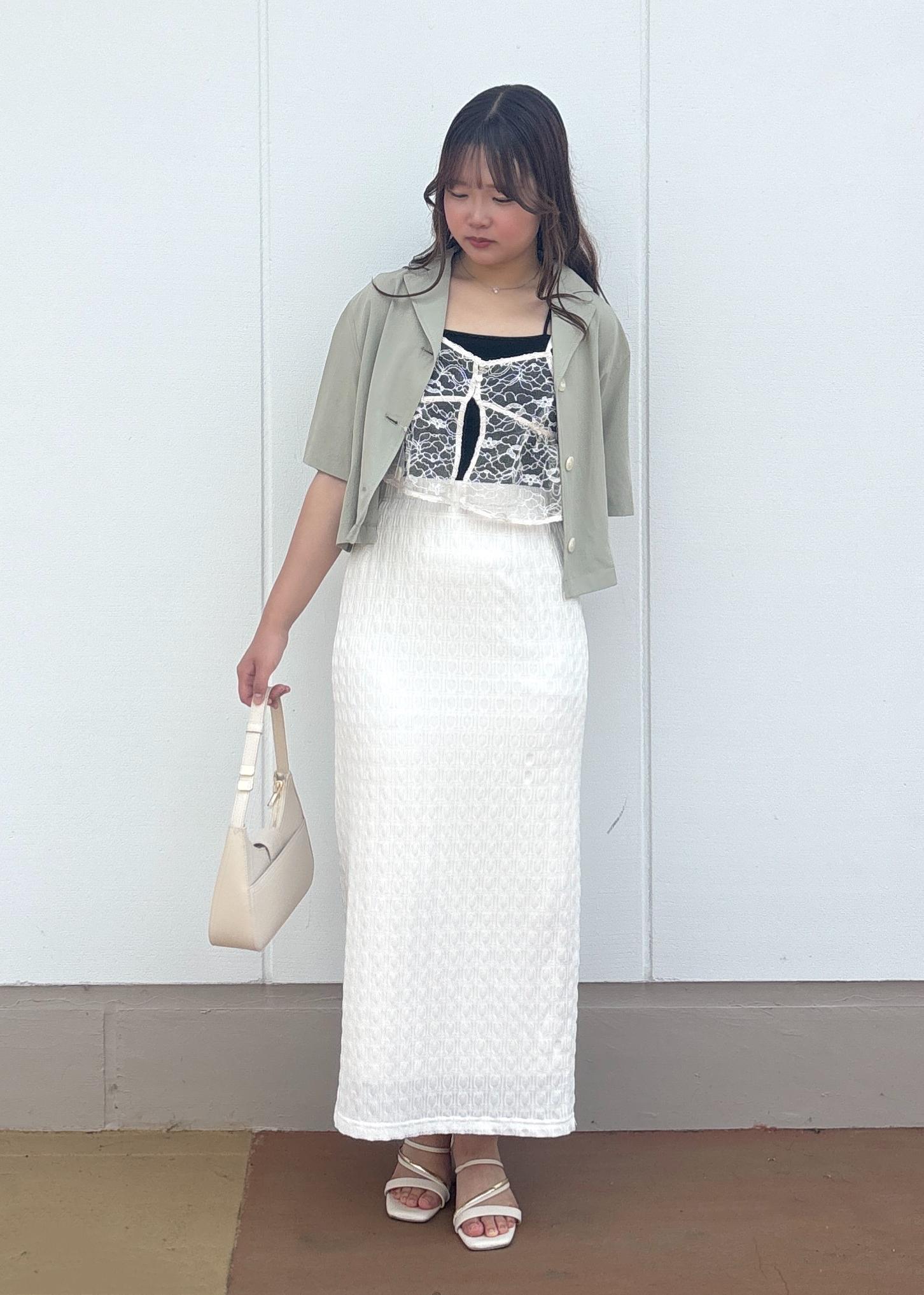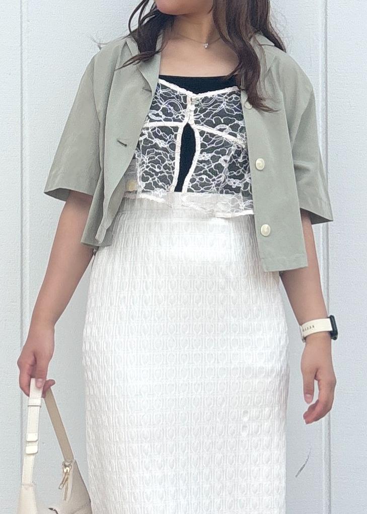 シンプルなコーデになりがちですがビスチェを取り入れるだけで華やかになります!